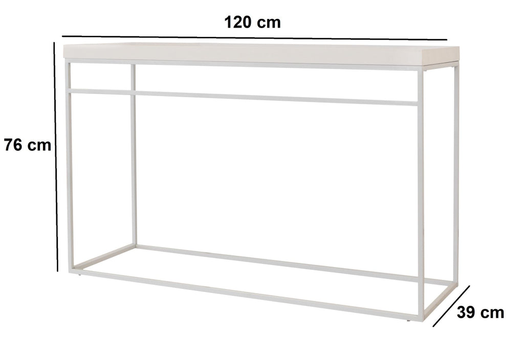Console avec structure en métal thermolaqué blanc et plateau en MDF blanc mat.