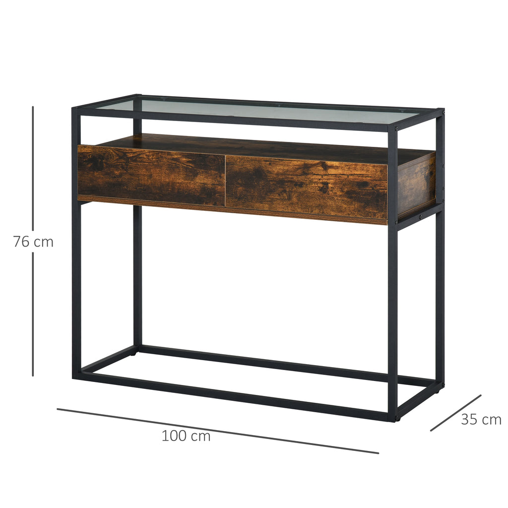 Console Fixe 100x35x76 cm en Métal et Bois avec Plateau en Verre