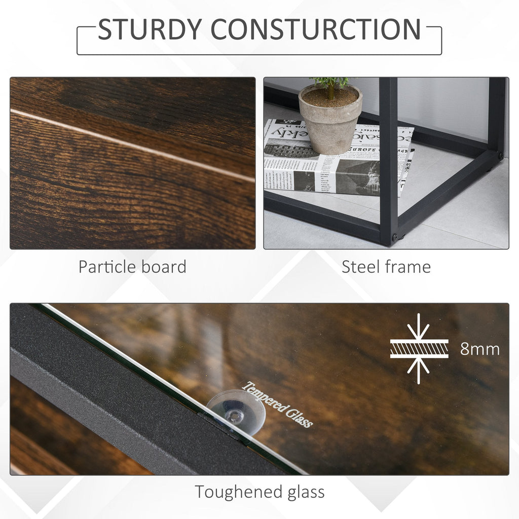 Vous pensez qu'il manque quelque chose à vos meubles ? Choisissez la table console pour compléter le look de votre maison ! Elle vous offre amplement d'espace pour poser vos objets du quotidien et est idéale comme console pour l'entrée, table basse pour le salon et partout où vous le souhaitez. Il a un design industriel élégant avec une structure en métal solide, des panneaux en bois et un plateau en verre accrocheur. Apportez du style à votre maison !