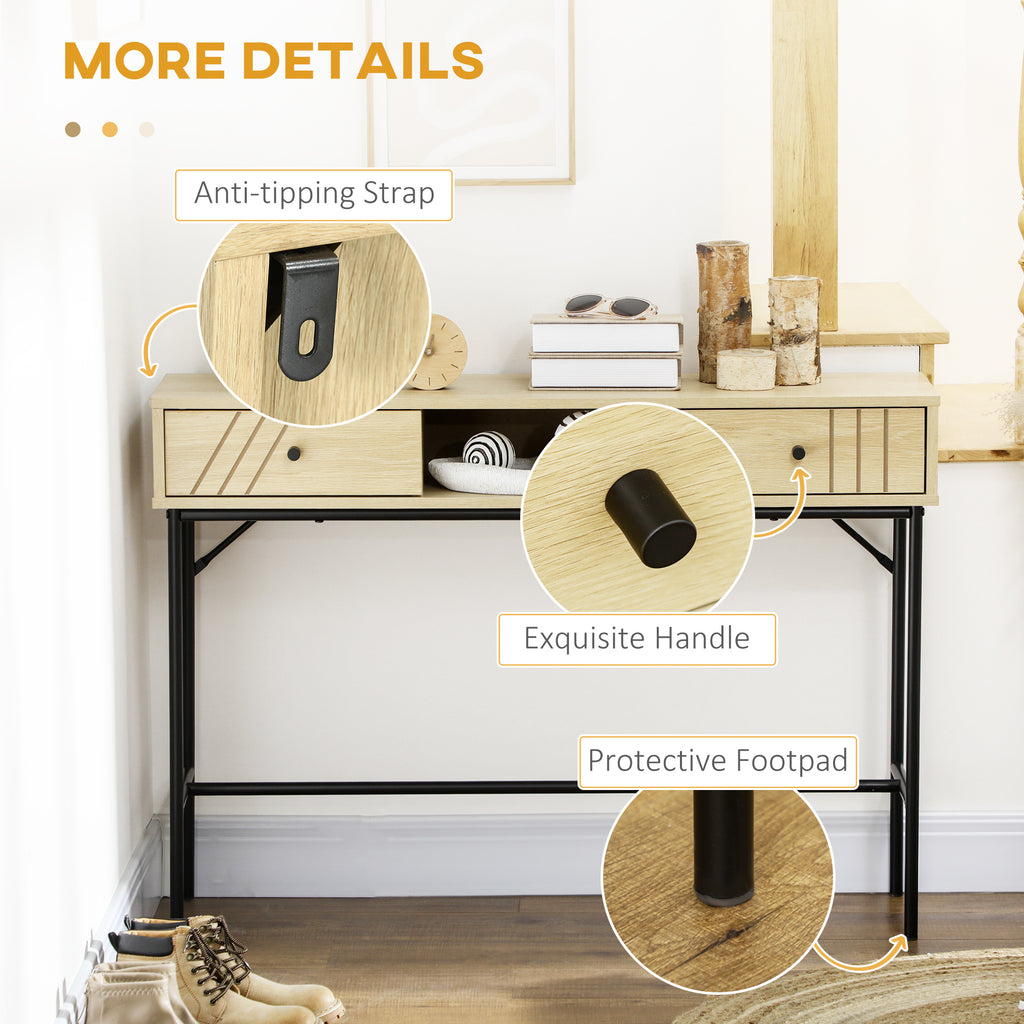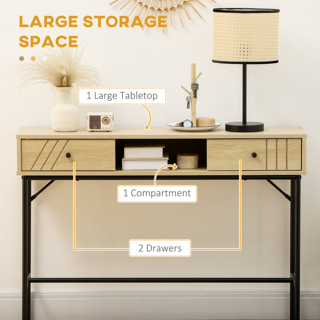 Consolle Fissa 2 Cassetti 110x29,5x78 cm in Legno e Metallo Naturale