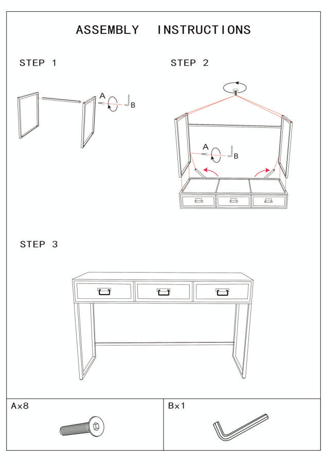 Console Fixe 3 Tiroirs 120x35x78 cm en Métal et Bois