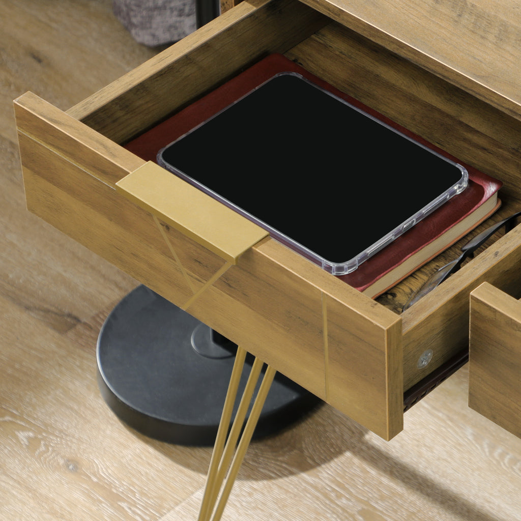 - DESIGN VINTAGE: I pannelli in bronzo antico, le gambe oro e le linee decorative di questa scrivania per cameretta in legno si fondono con qualunque arredamento grazie al suo design affascinante