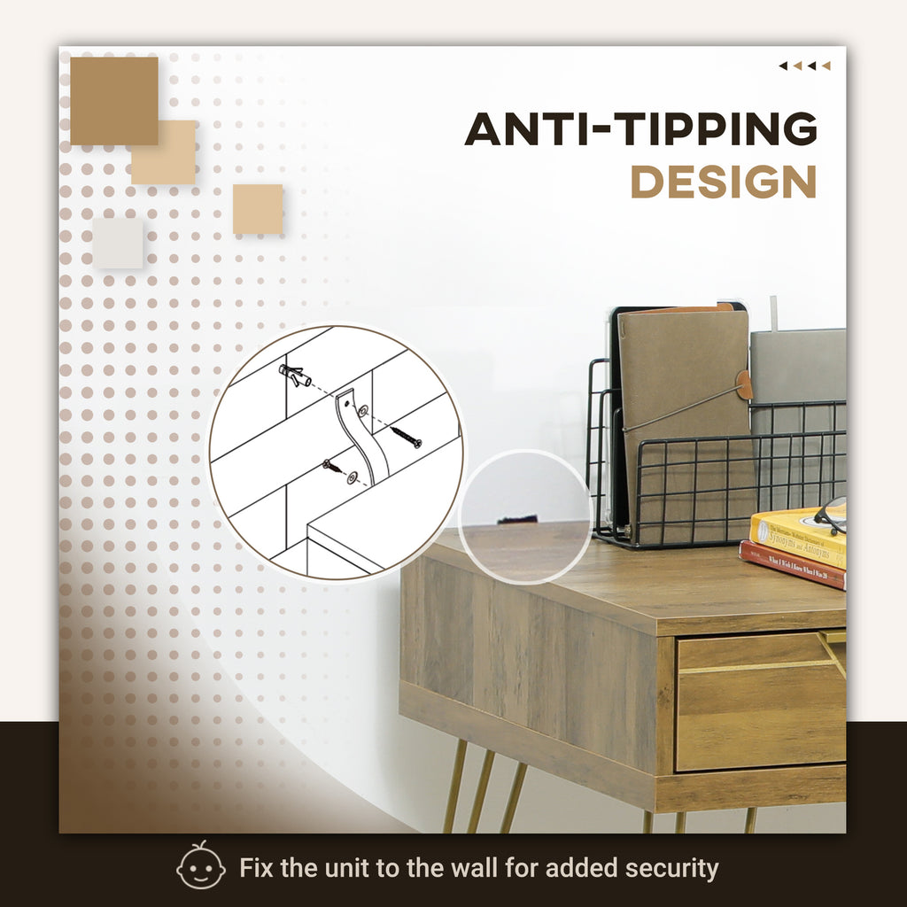 - STRUTTURA STABILE: Questa scrivania moderna possiede un piano in truciolato e una solida struttura in acciaio, facile da pulire e in grado di sostenere fino a 34 kg di peso. La cinghia antiribaltamento inclusa consente di fissare l'unità alla parete per offrire una maggiore sicurezza, mentre i piedini antiscivolo proteggono il pavimento dai graffi