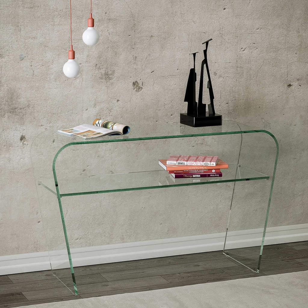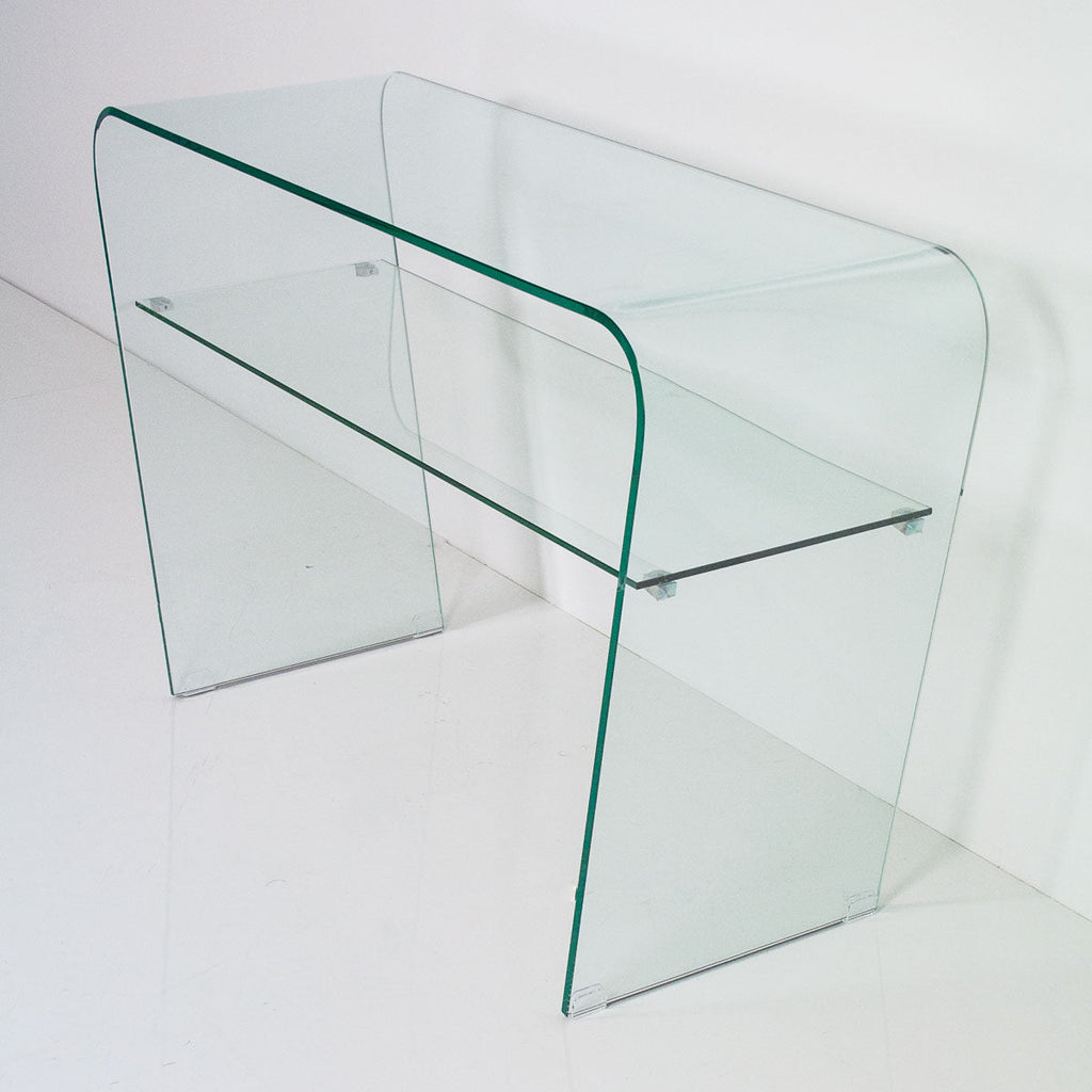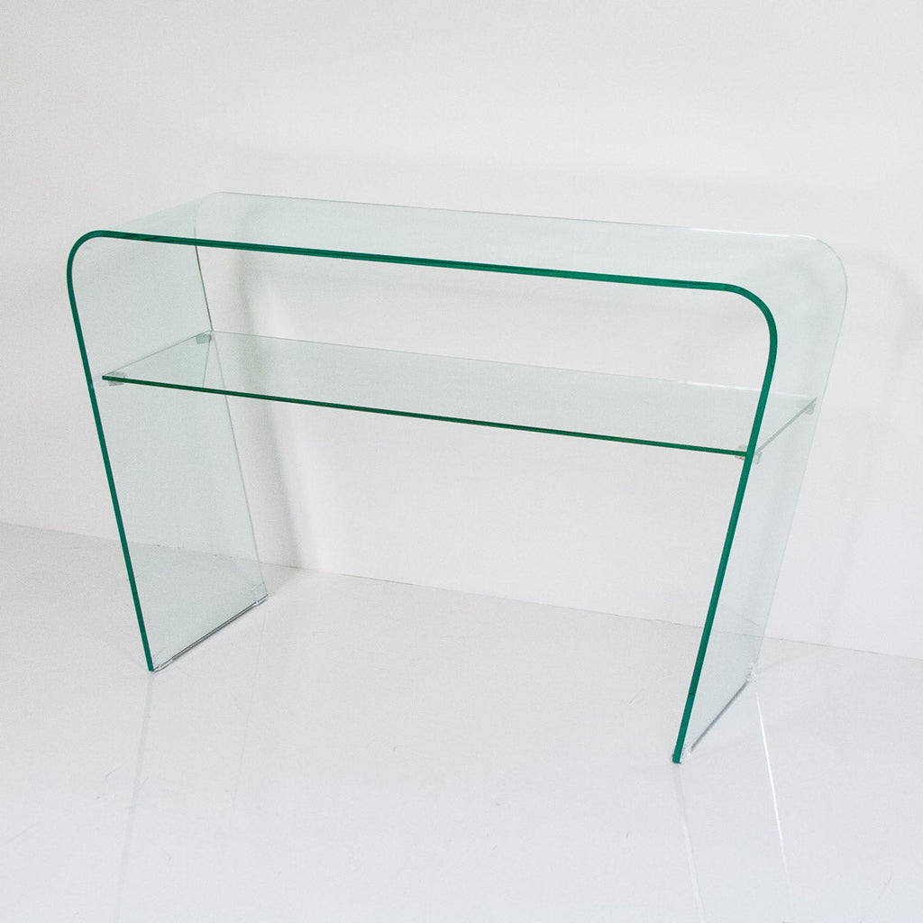 Console en Verre Eta une console en verre courbé qui meuble chaque type d'habitation avec le raffinement du verre et l'élégance de ses courbes.