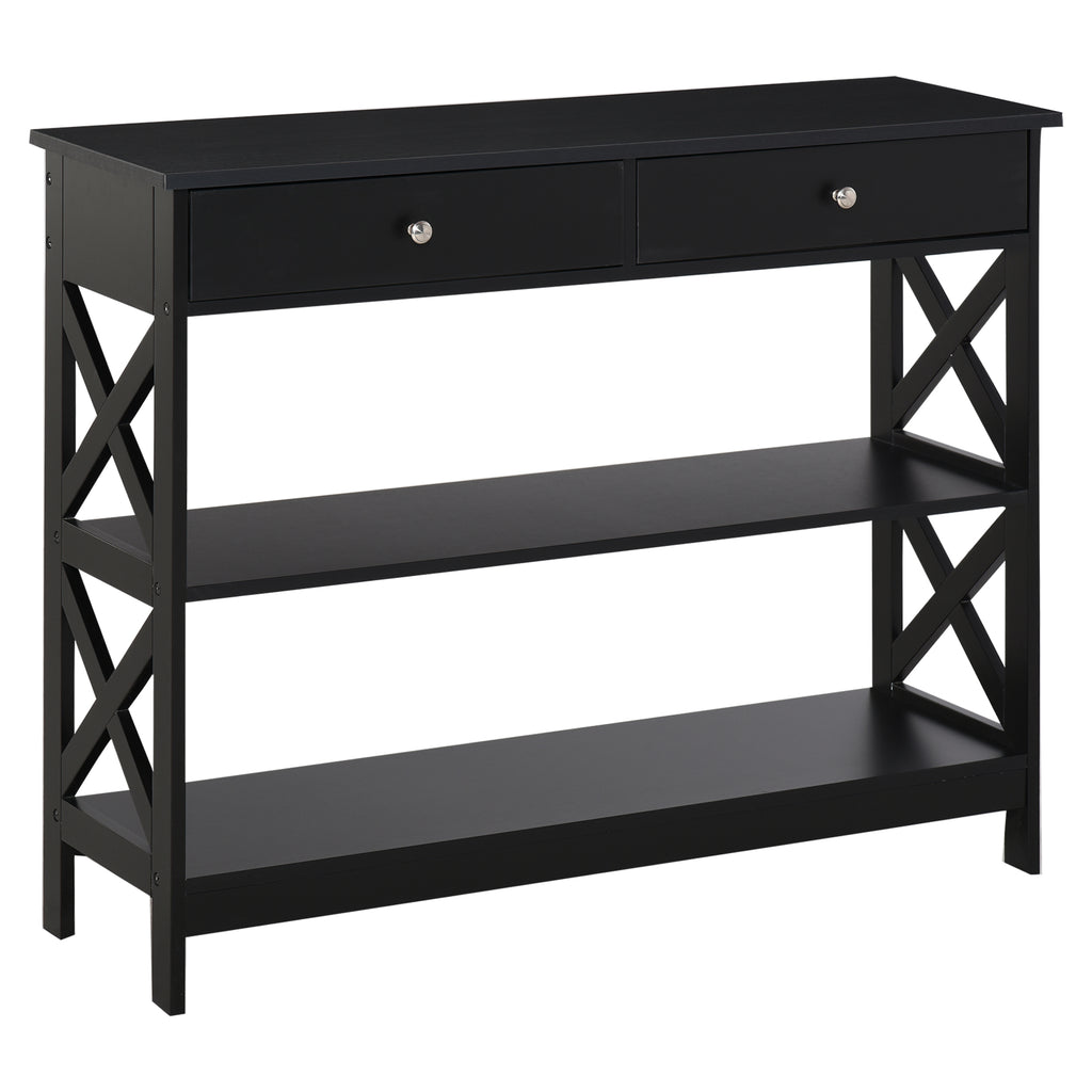 - TOUT EN ORDRE : La table console est équipée de 2 tiroirs, d'une grande surface d'appui et de 2 étagères, pour vous offrir beaucoup d'espace pour ranger et garder vos objets quotidiens en ordre.