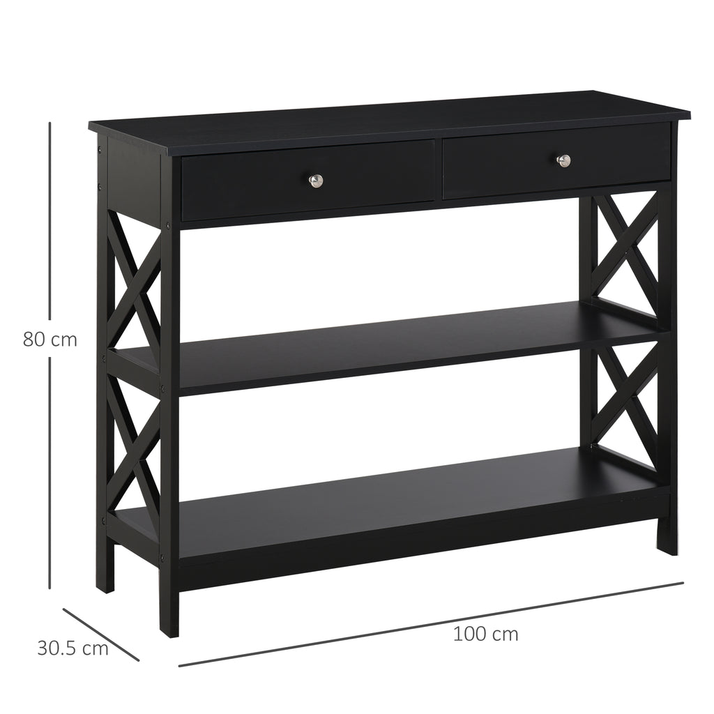 Console d'entrée 2 tiroirs 100x30,5x80 cm en MDF noir