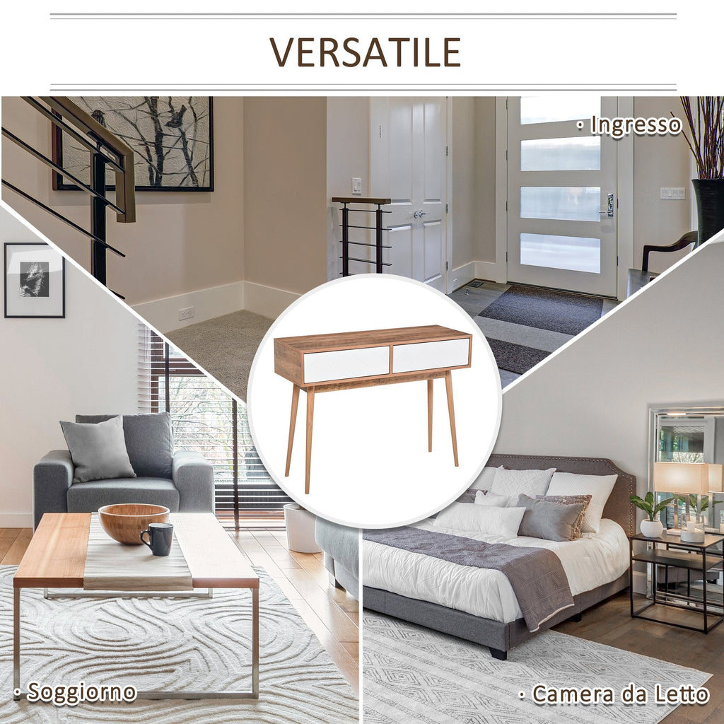 Console d'Entrée 2 Tiroirs 100x35x75 cm en Bois Blanc et Teck