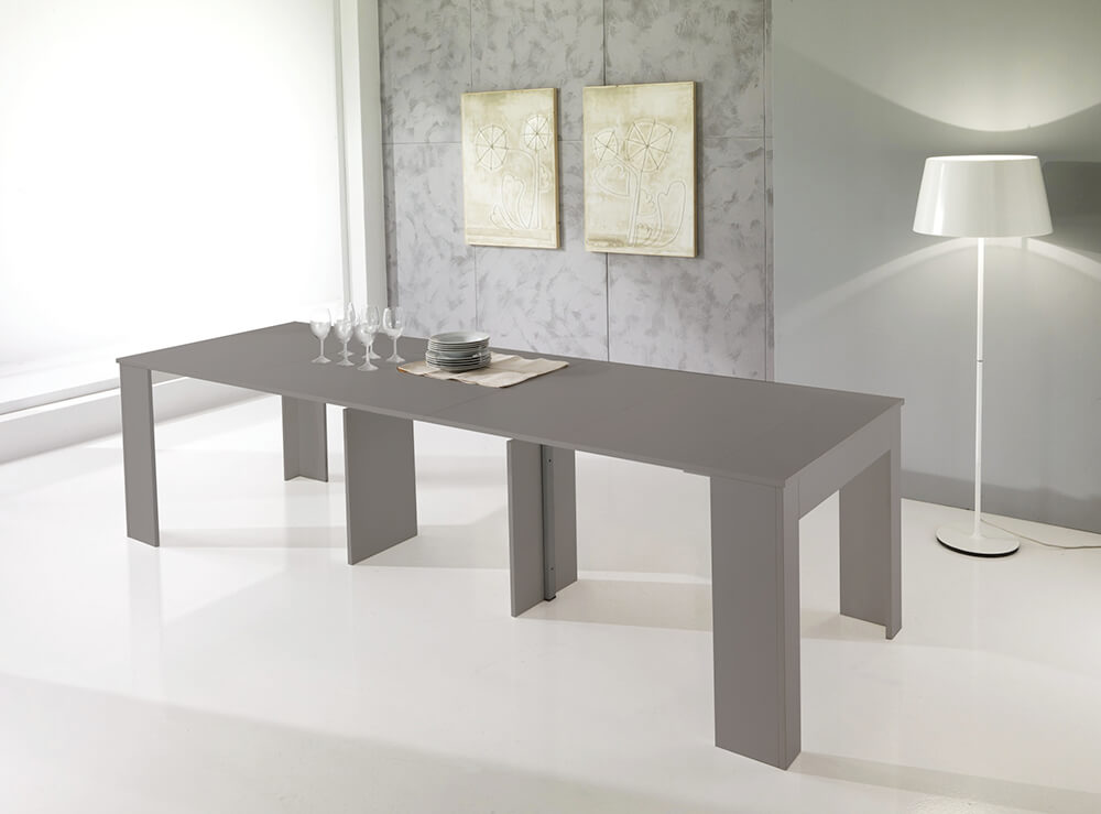Table Console Extensible en Bois et Mélamine 42/302x95x76cm TFT Mat Ciel Beige Gris