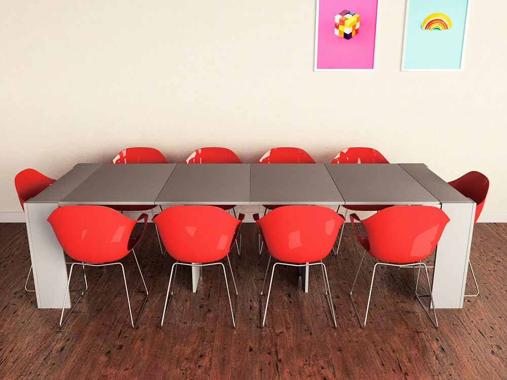 Table console extensible en mélamine pour ceux qui recherchent un soutien pour les petits espaces ou qui, si nécessaire, une table capable d'accueillir de nombreux invités, sera très utile car elle s'étend jusqu'à 300 cm et chacun aura une place garantie à la table depuis c'est l'un des plus longs de la catégorie, il s'allonge en joignant jusqu'à un maximum de 4 rallonges de 65cm chacune qui se placent dans les pieds lorsque la console est fermée. La console extensible TFT n'est pas seulement un meuble très utile, mais elle apportera une touche de style à votre maison. Dotée d'une structure en bois massif et mélaminé, elle sera indispensable pour votre intérieur. Meublez vos espaces avec la qualité du Made In Italy sous la marque TFT Serie MoonCaractéristiques: