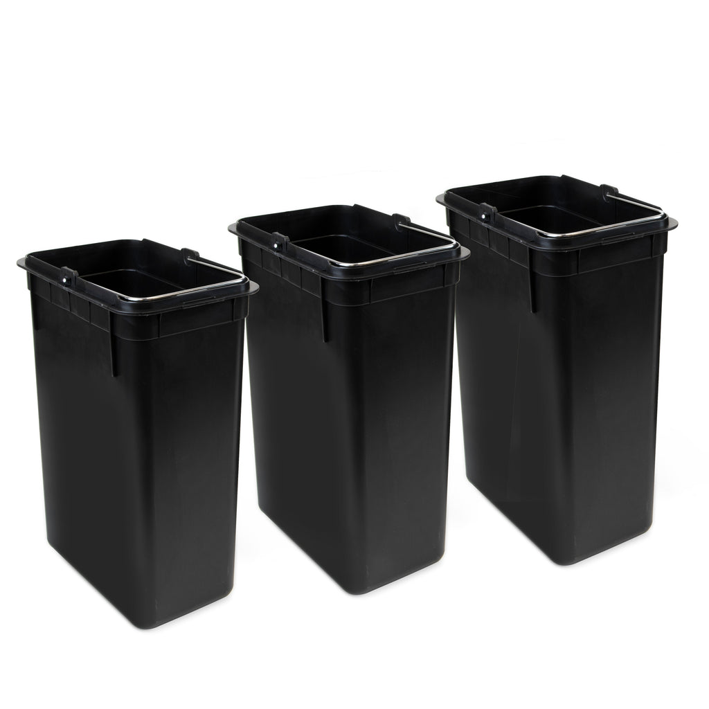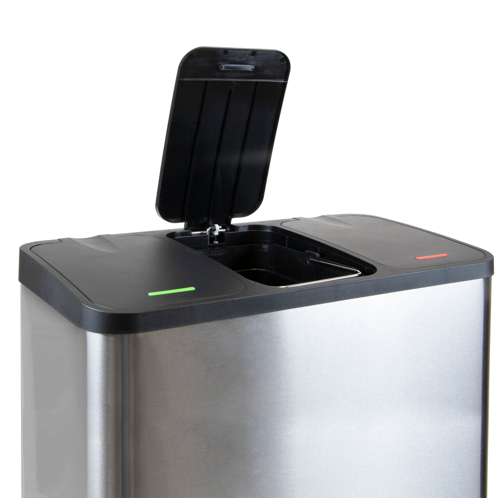 - Conteneur de recyclage comportant 3 compartiments de 9 litres pour classer les déchets (27 litres au total).