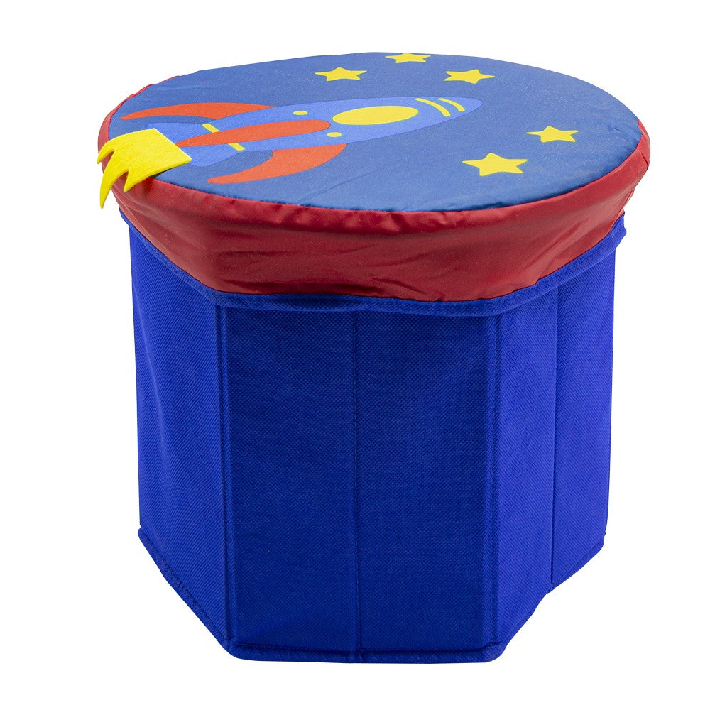 Coffre à jouets conteneur 23x26x28 cm avec couvercles lion hibou fille fusée Bleu