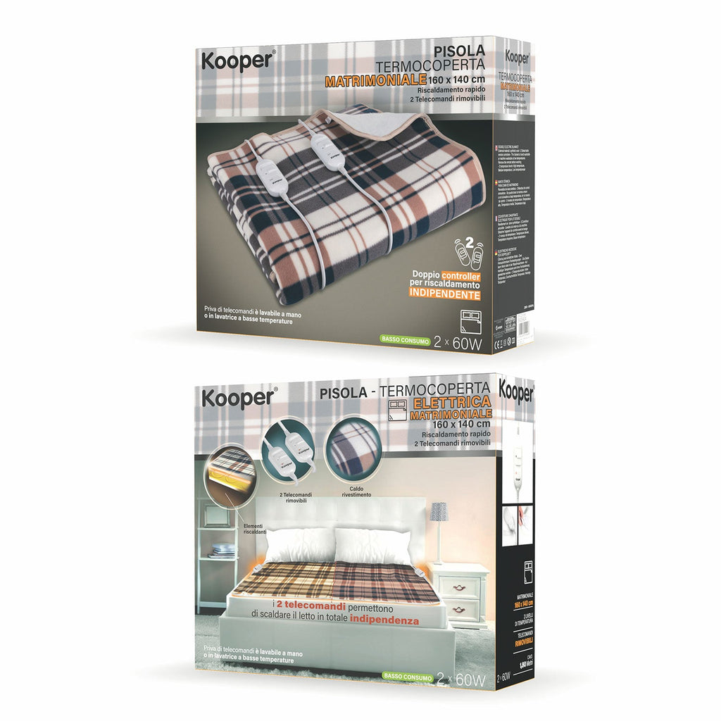 Couverture Thermique Électrique Double en Polaire 120W Kooper Pisolona
