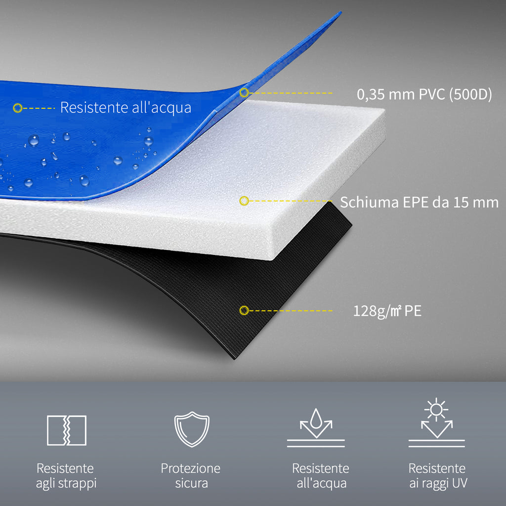 - In PVC e Pe, estremamente durevole, resistente alle intemperie e all'usura.