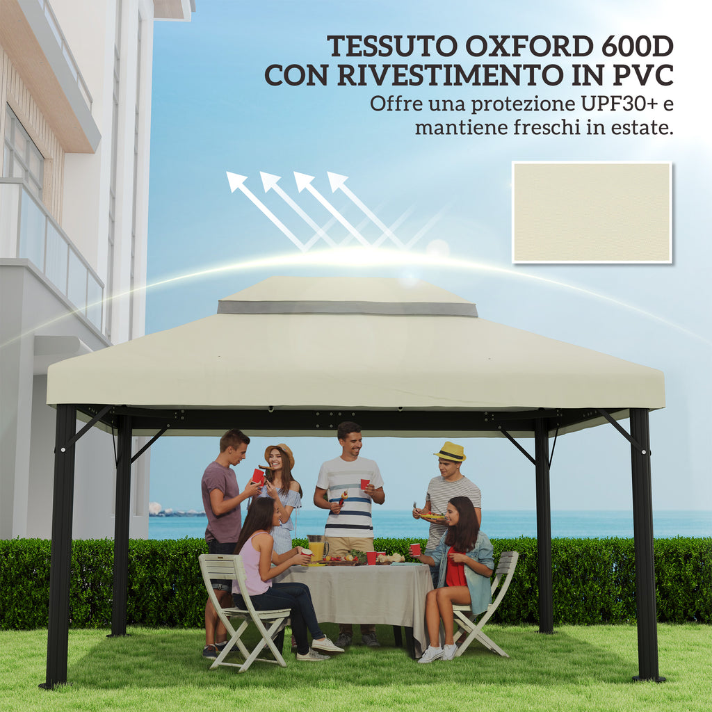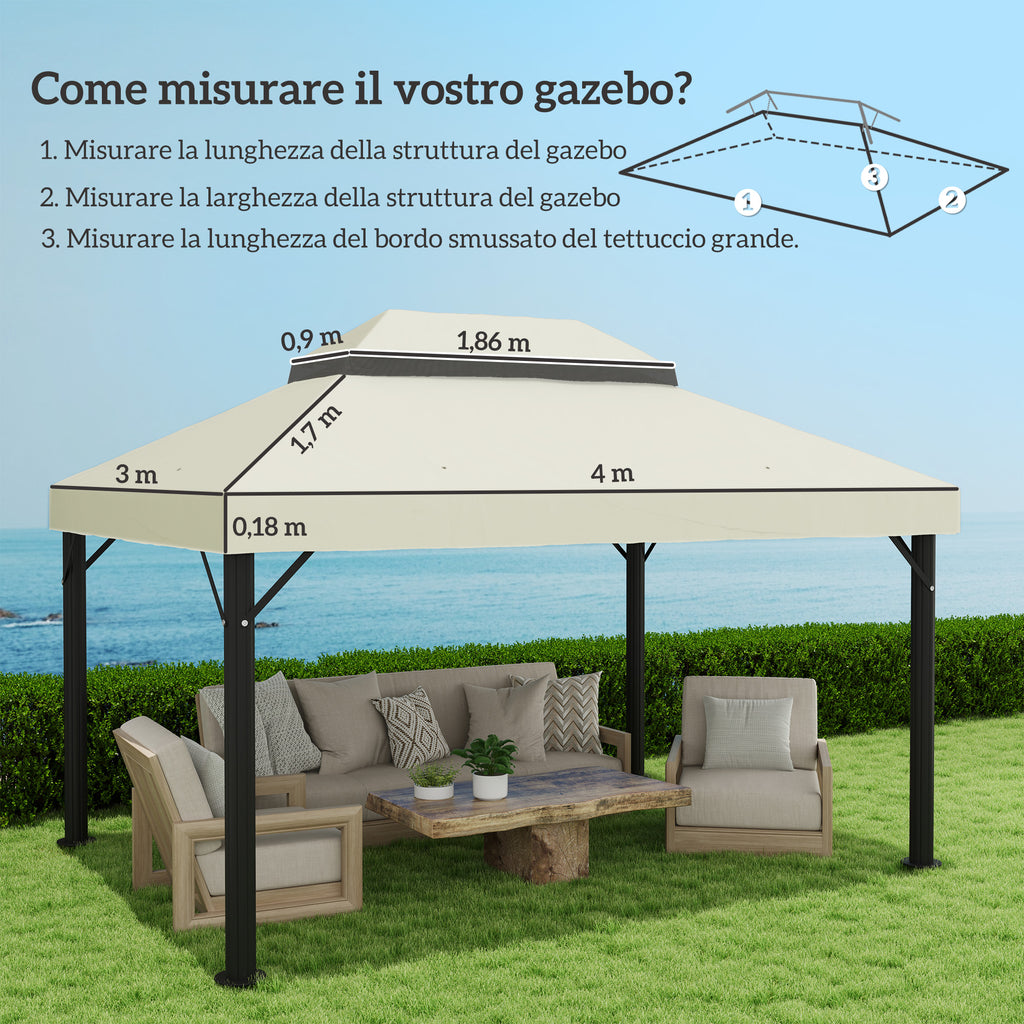 Copertura per Gazebo da Giardino 400x 300 cm a 2 Livelli in Tessuto Oxford 600D con Fori di Drenaggio Bianco Crema