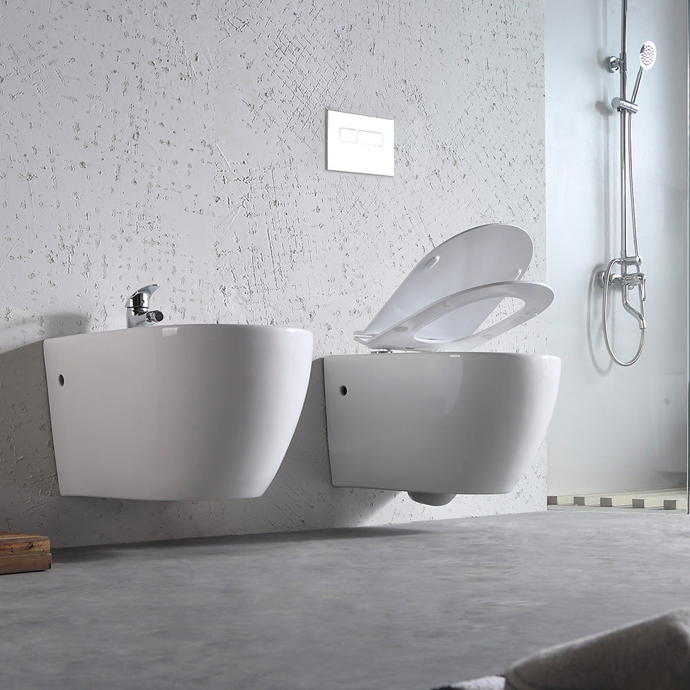 Paire de Sanitaires WC et Bidet Suspendus en Céramique 36,5x56x37cm Blanc