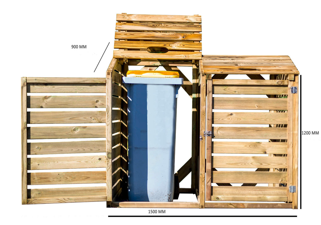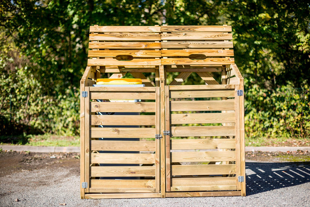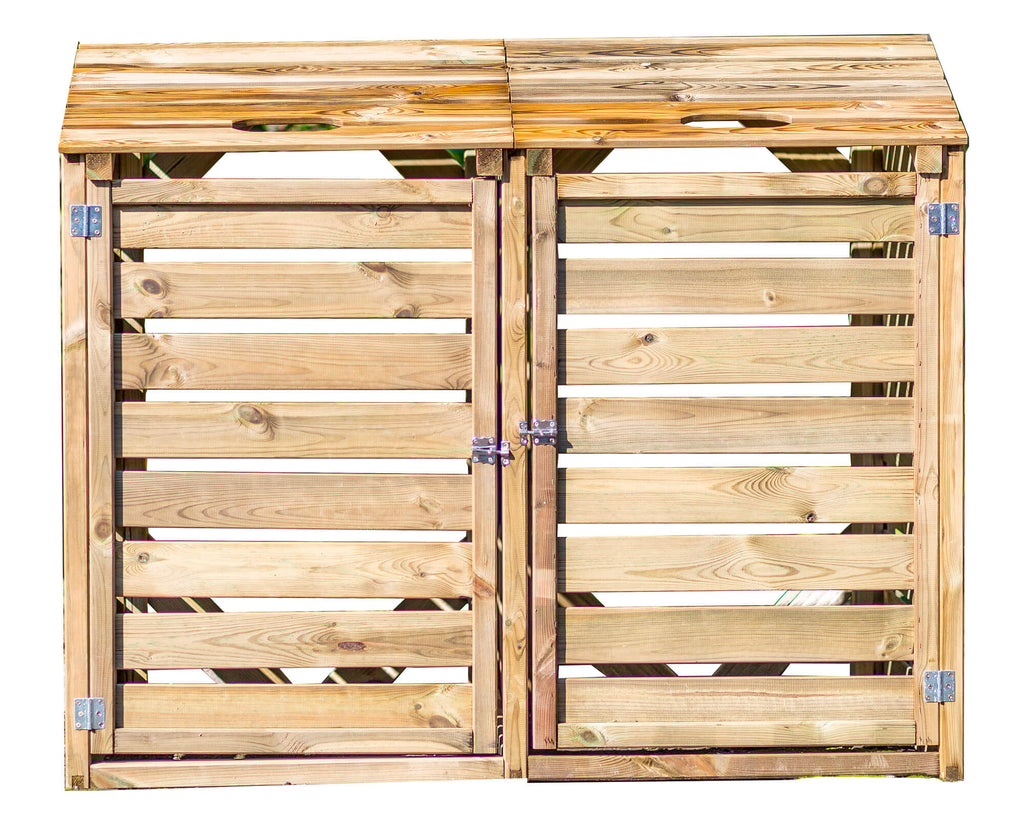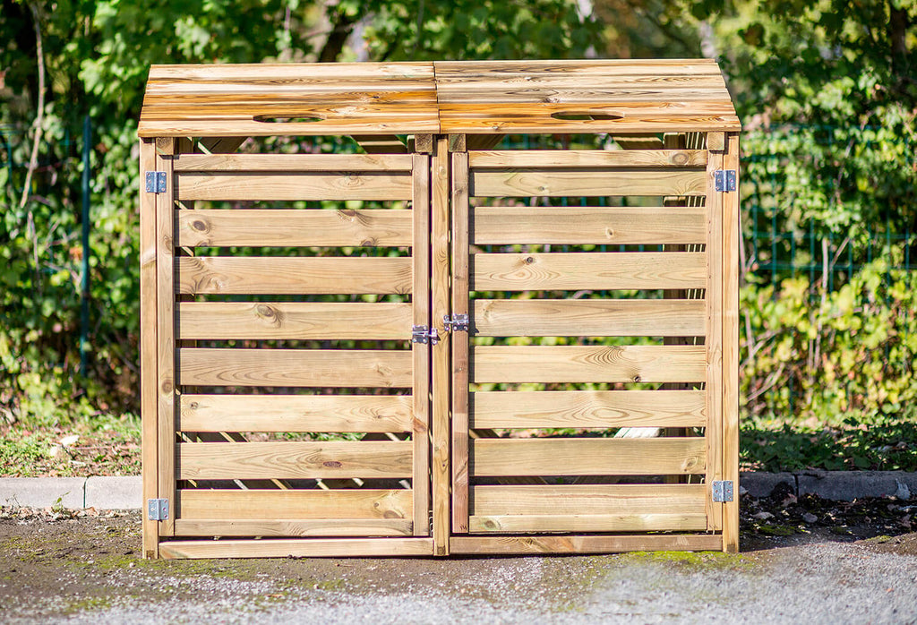 Ideale per nascondere alla vista i bidoni della raccolta differenziata; può contenere n°2 bidoni. Dotato di portelli di apertura e coperchi, per facilitare la movimentazione