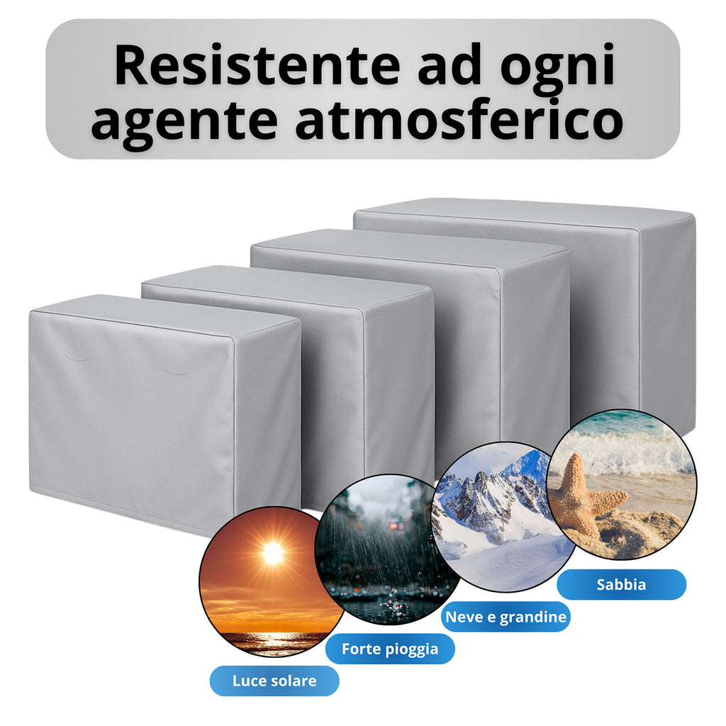 Con il nostro copricondizionatore, potrai prolungare la durata e l'efficienza del tuo climatizzatore, mantenendolo in ottime condizioni stagione dopo stagione. La superficie liscia e resistente facilita la pulizia, garantendo un prodotto sempre in perfette condizioni con il minimo sforzo. Non aspettare, proteggi il tuo investimento!