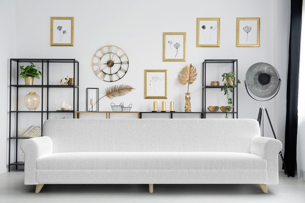 Housse de canapé extensible 4 places en polyester blanc