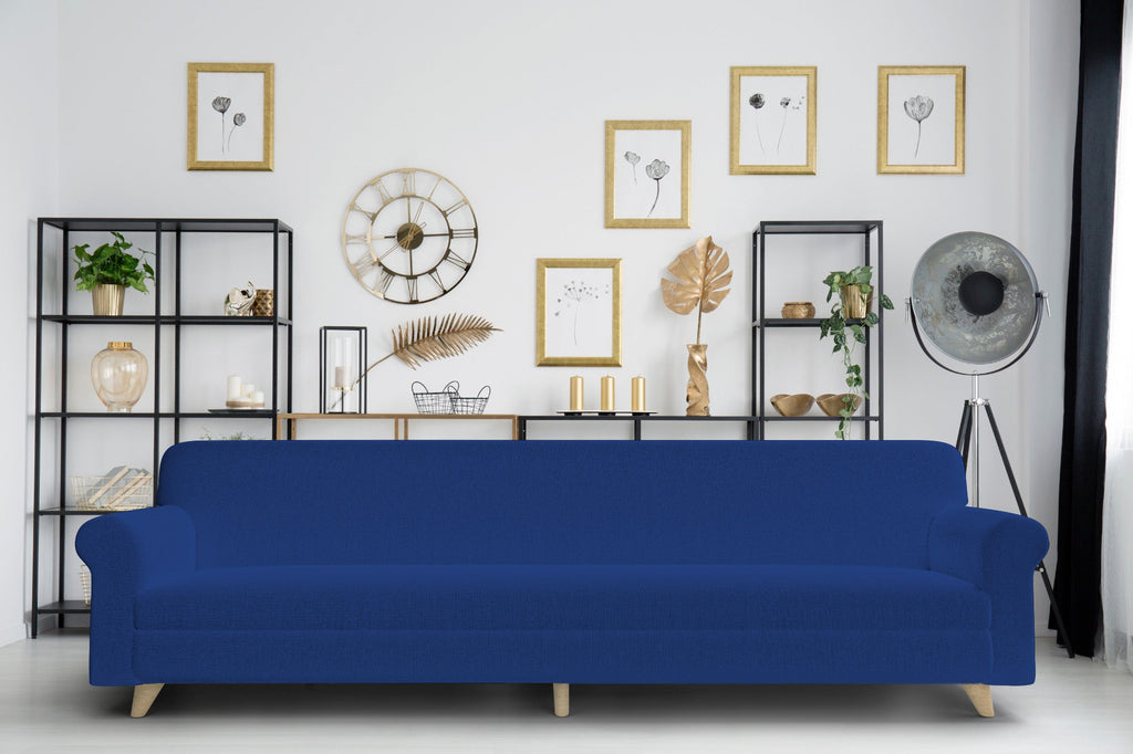 Housse de canapé extensible 4 places en polyester bleu électrique