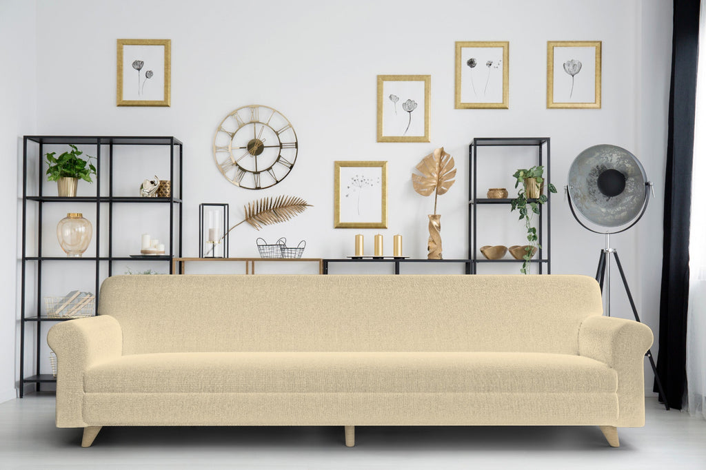 Housse de canapé extensible 4 places en polyester crème
