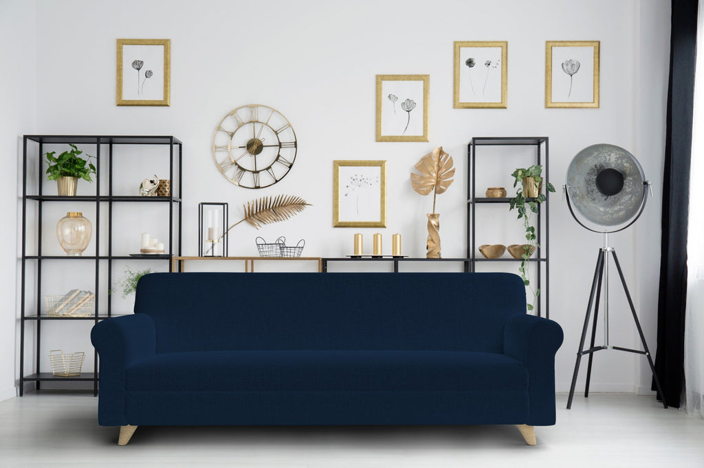 Housse de canapé extensible 1, 2 et 3 places en tissu bleu foncé