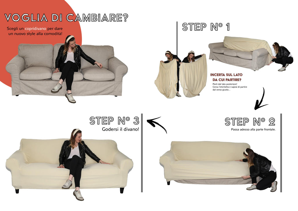 Housse de canapé en forme de structure lisse bi-élastique PLUS BEAU! Fait de tissus d' ameublement raffinés avec des finitions soignées et des tailles abondantes qui font de ce produit un vêtement prestigieux, transformant l'atmosphère de votre salon en un seul geste, le rendant plus élégant et accueillant. Cousu avec des coutures résistantes à la traction et invisibles avec une bande élastique périmétrique à la base pour adhérer parfaitement au canapé.