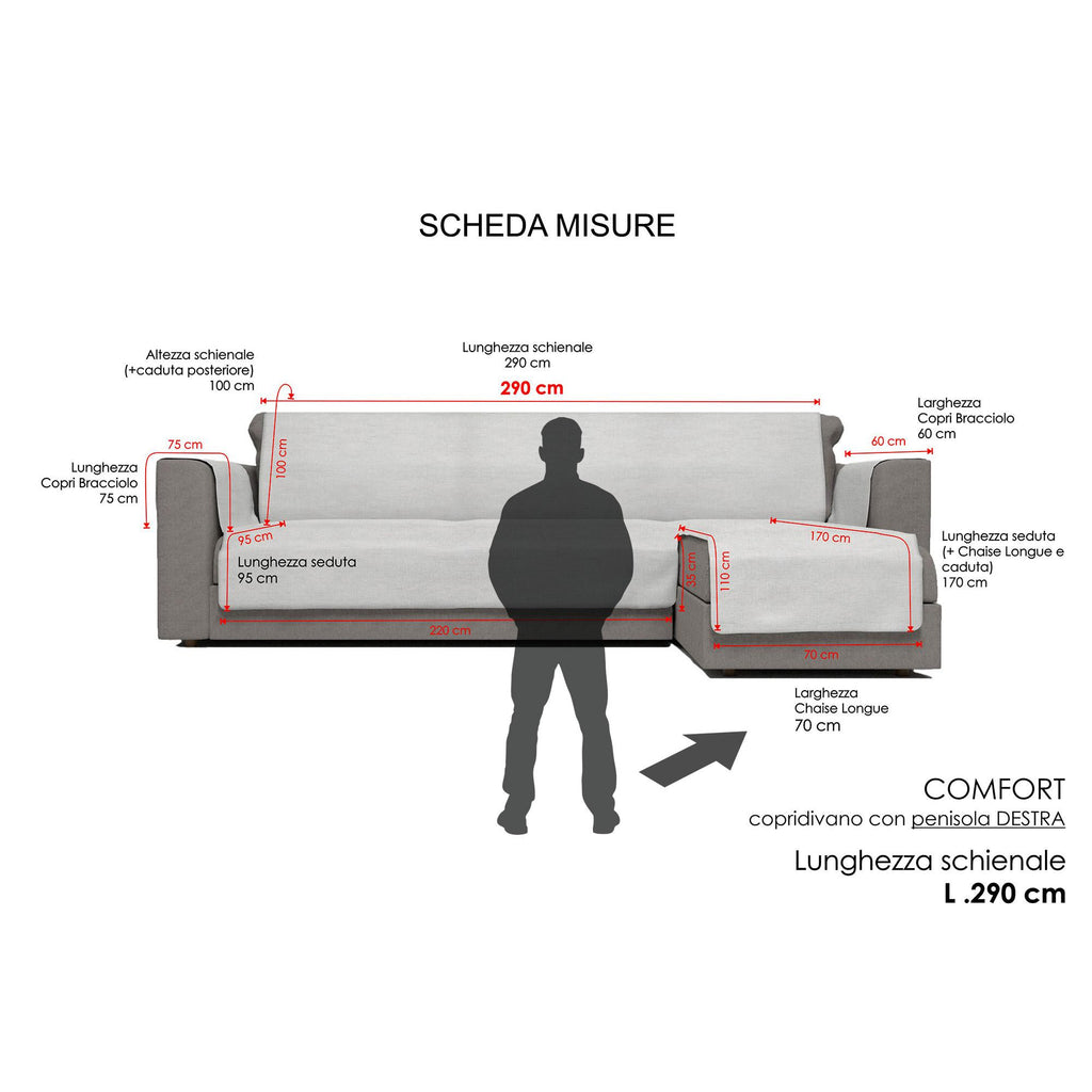 Housse de canapé confort antidérapante, équipée d'un dessous en caoutchouc antidérapant, de manière à ce que l'article adhère parfaitement au canapé. Article résistant, adaptable à tous les types de canapés, en particulier ceux en cuir, où les housses de canapé normales ont tendance à glisser. Article équipé d'une péninsule à droite en regardant l'article de face. Article de fabrication artisanale, chaque vêtement peut présenter une légère différence de couleur, donnée par le tissage de fabrication des fils. Article fabriqué en Italie.