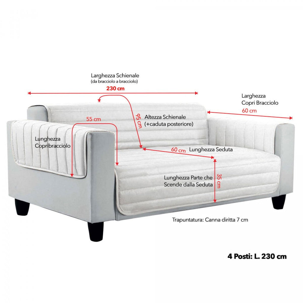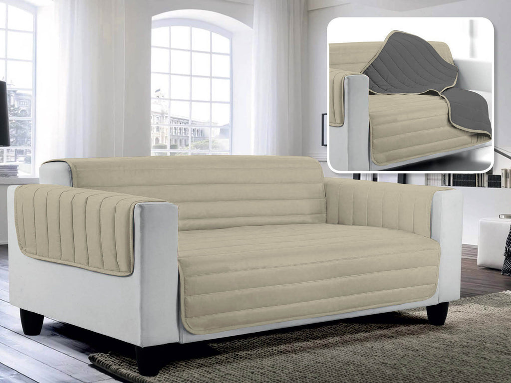 Housse de canapé matelassée en microfibre hypoallergénique double face. Fait de tissus d'ameublement raffinés avec des finitions soignées et des tailles abondantes qui font de ce produit un vêtement prestigieux, transformant l'atmosphère de votre salon en un seul geste, le rendant plus élégant et accueillant. Étudié, assemblé et cousu entièrement en Italie.