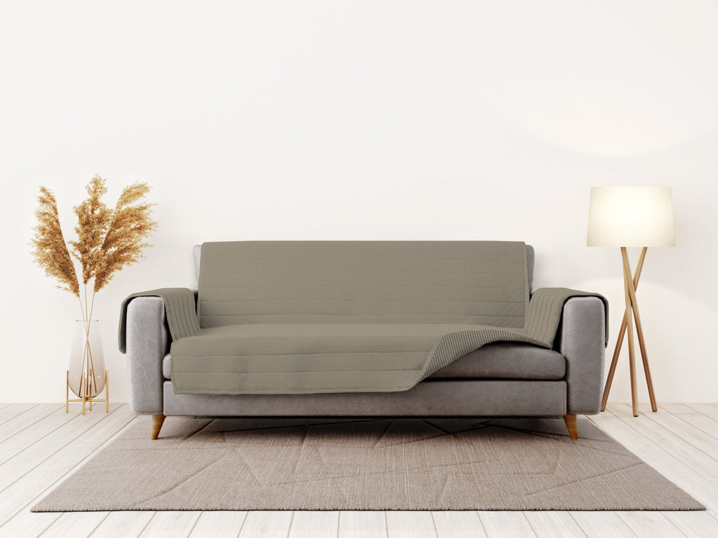 Housse de canapé matelassée en Microfibre Gris Tourterelle