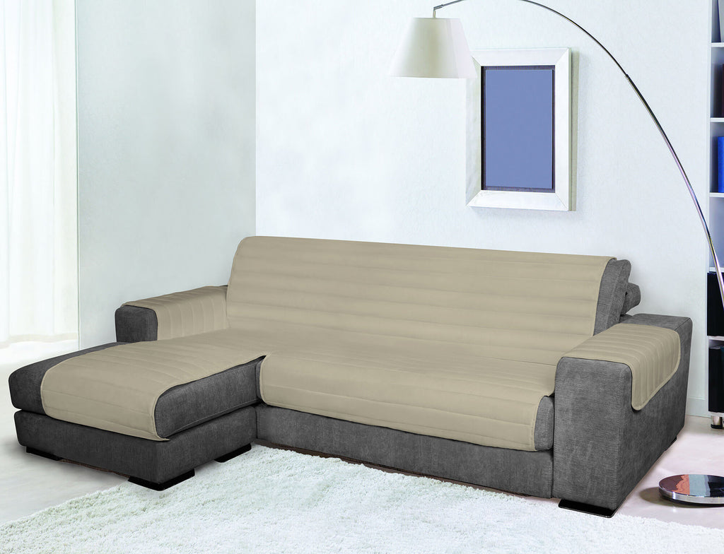 Housse de canapé matelassée avec siège péninsule gauche en microfibre gris tourterelle différentes tailles