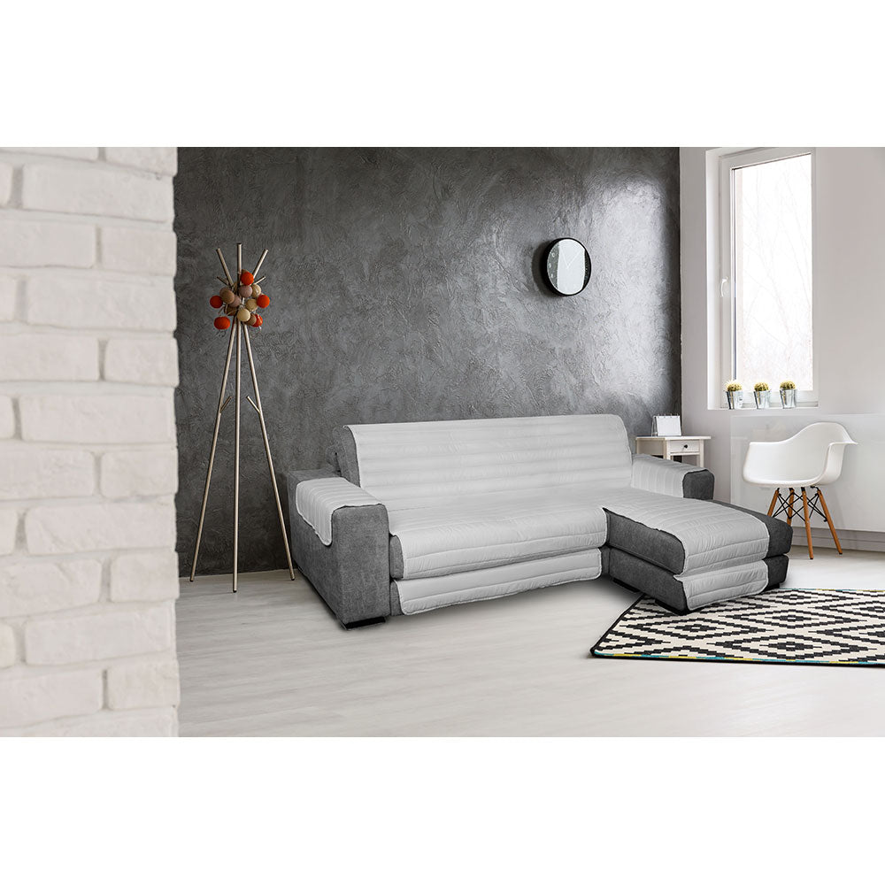 Housse de canapé matelassée en microfibre avec péninsule droite gris clair
