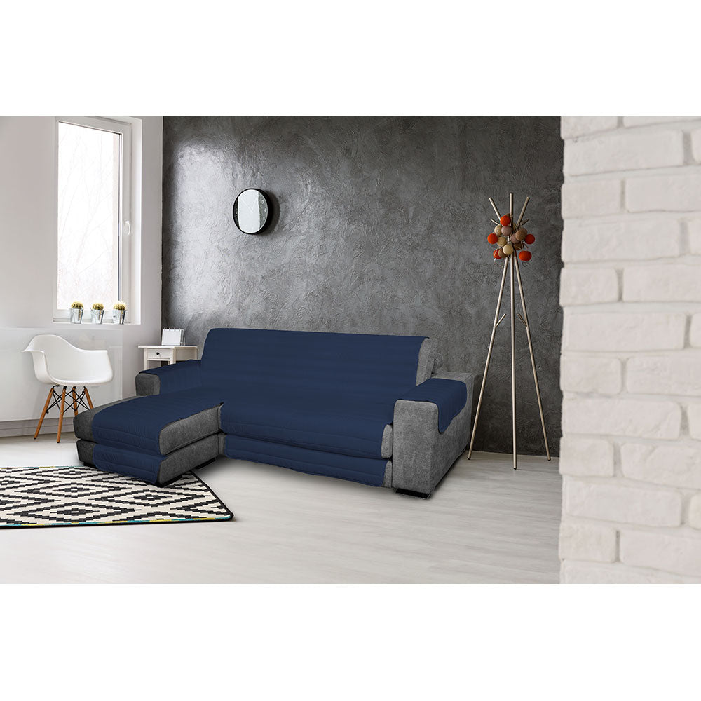 Housse de canapé matelassée en microfibre avec péninsule gauche bleu foncé