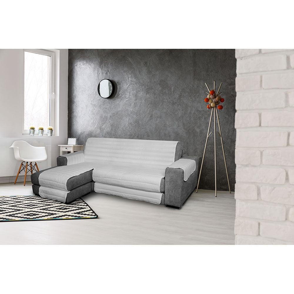 Housse de canapé matelassée en microfibre avec péninsule gauche gris clair