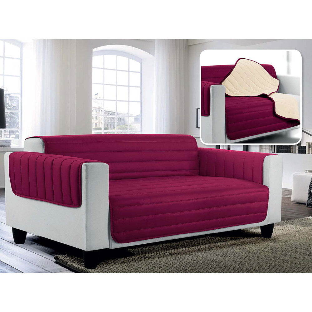 Housse de canapé matelassée en Microfibre Double Face Bordeaux/Crème