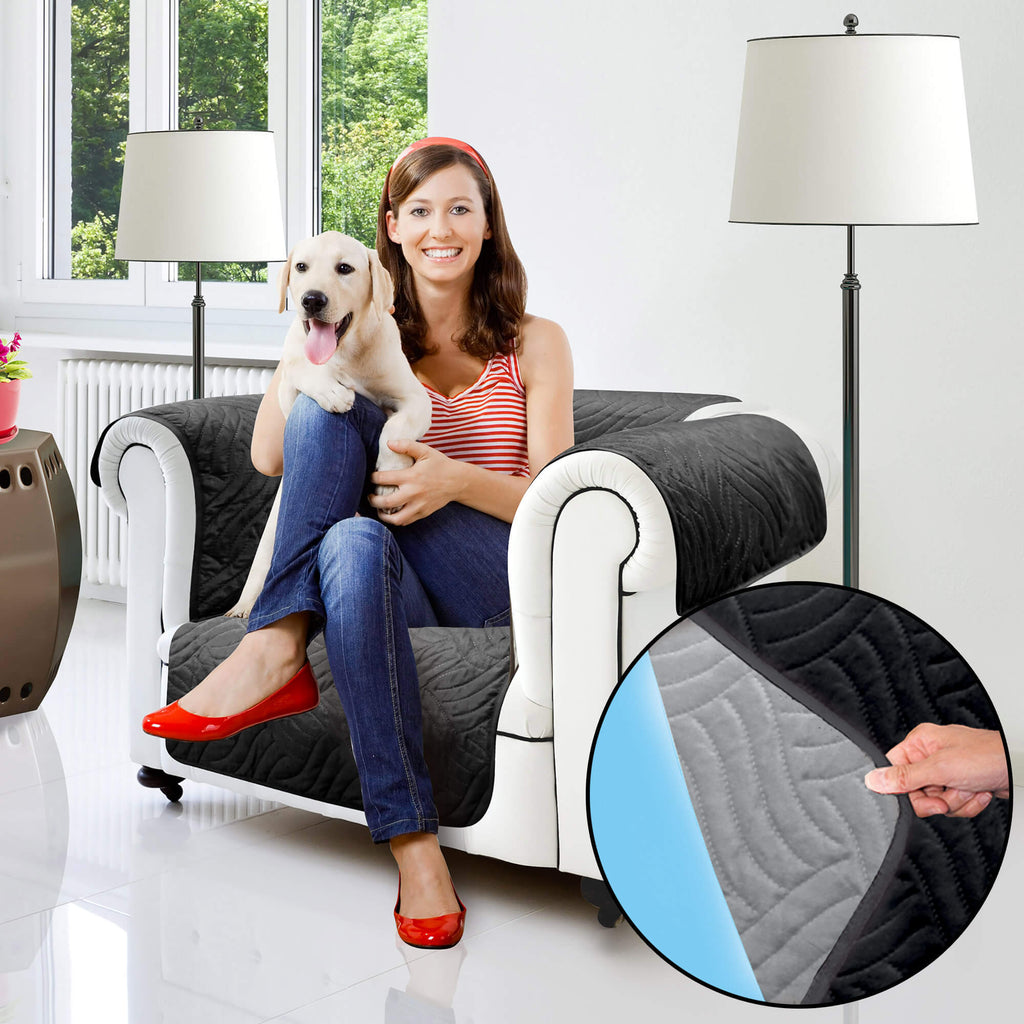 Housse de canapé universelle matelassée 1 place double face Starlyf housse de canapé noir et gris