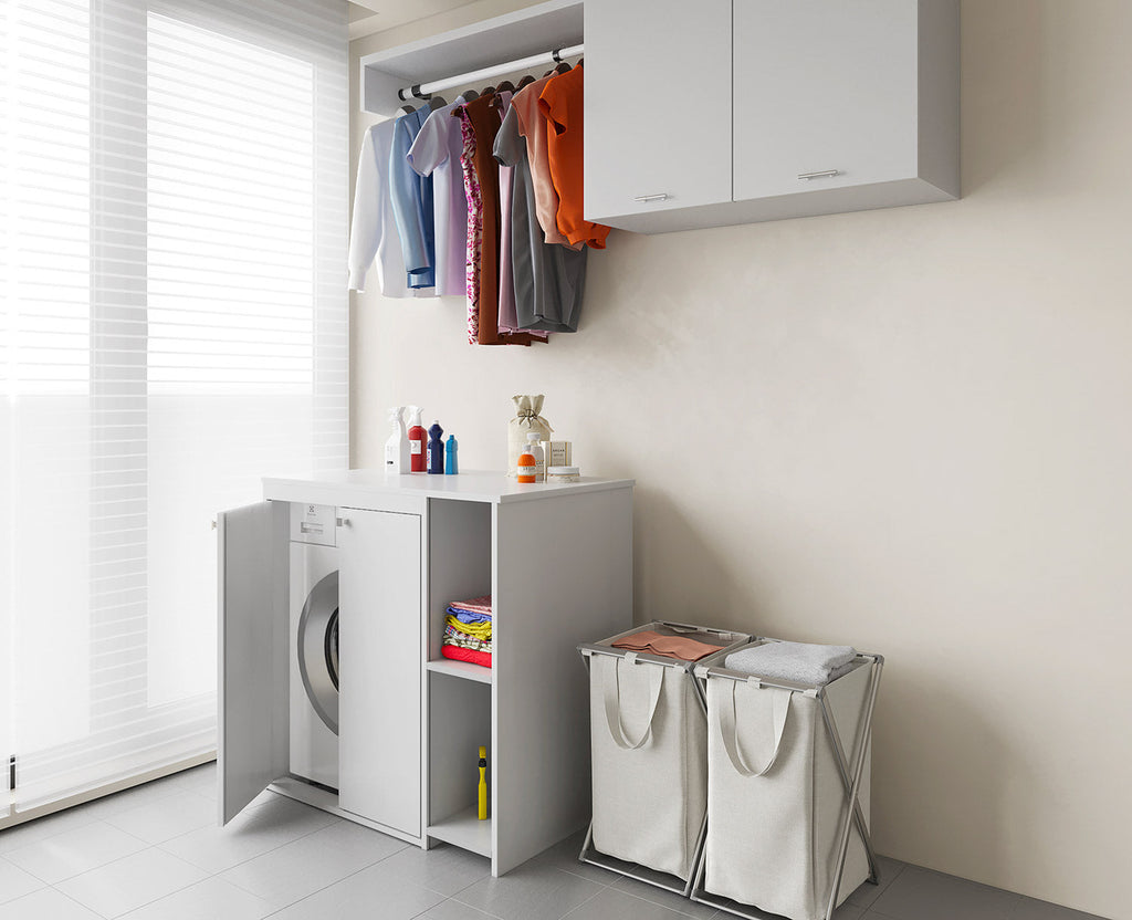 Le meuble est réalisé en résine PVC blanche d'une épaisseur de 18 mm et deux portes équipées d'une poignée en ABS chromé et d'une fermeture magnétique. Le meuble a des dimensions 95x60x94 cm et est fourni dans un kit de montage. Le kit complet de fixation murale est inclus avec le produit. Grâce à la rencontre entre confort et innovation, cette housse pour lave-linge est la solution idéale pour ranger votre lave-linge.
