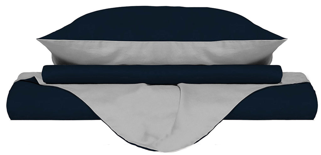 Housse de couette avec sac et taies d'oreiller double face Bleu Foncé / Gris Clair
