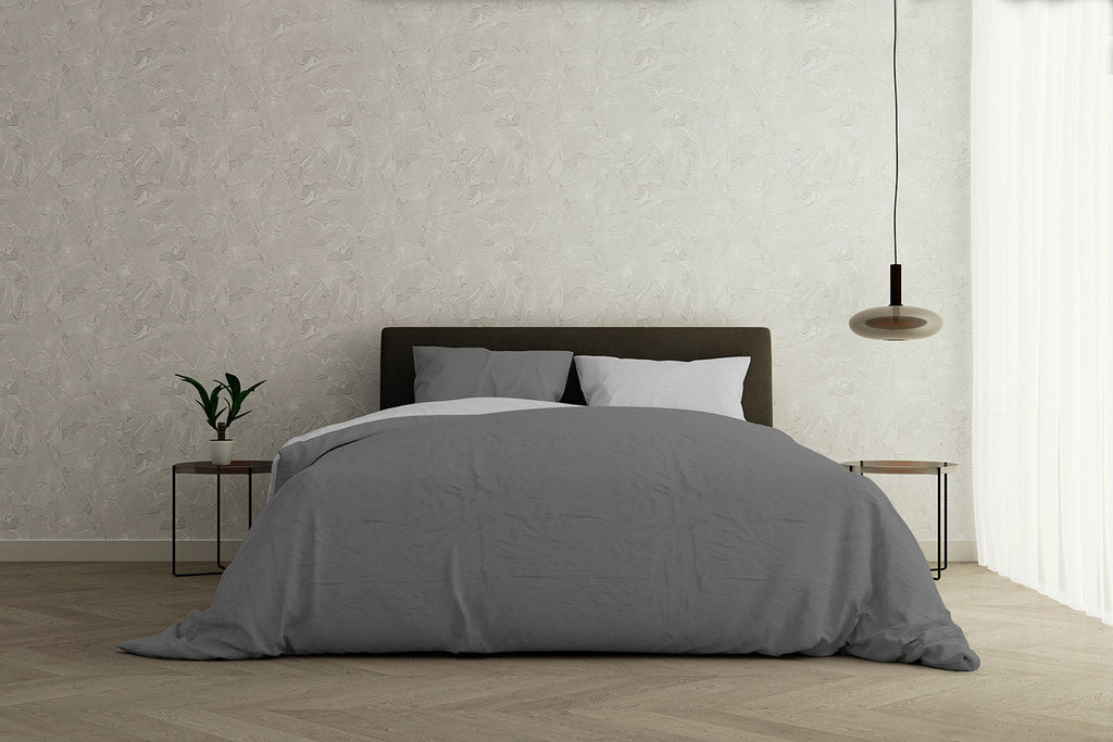 Housse de couette avec sac et taies d'oreiller réversible gris clair/fumée