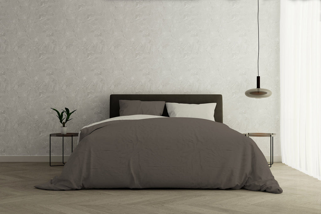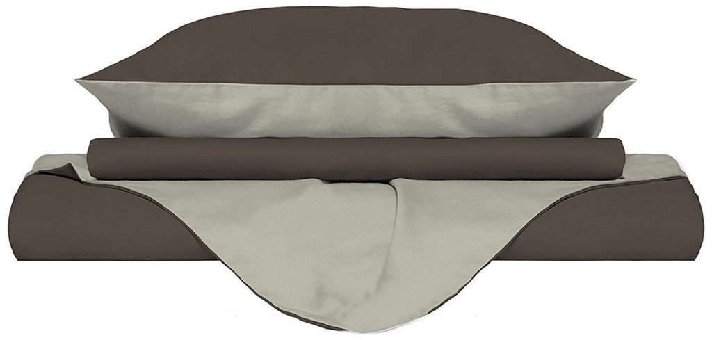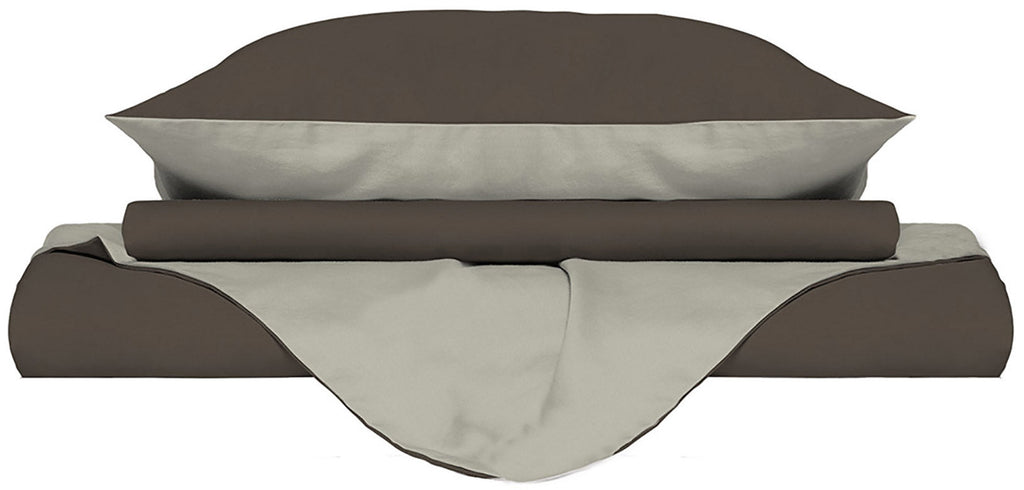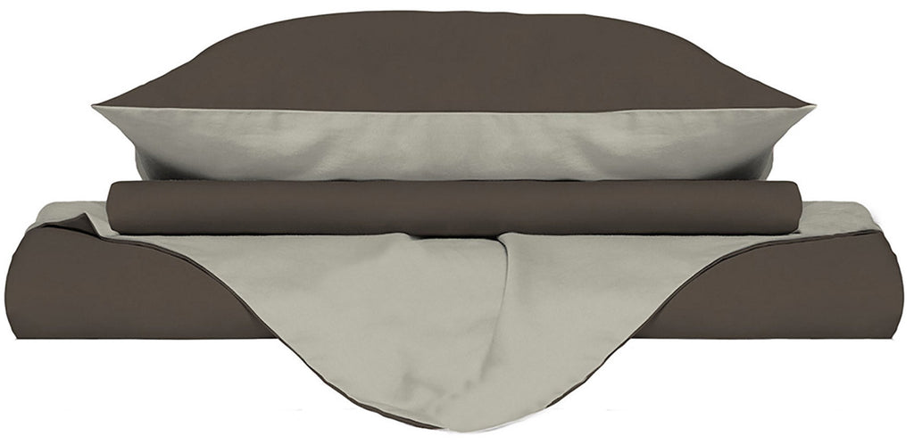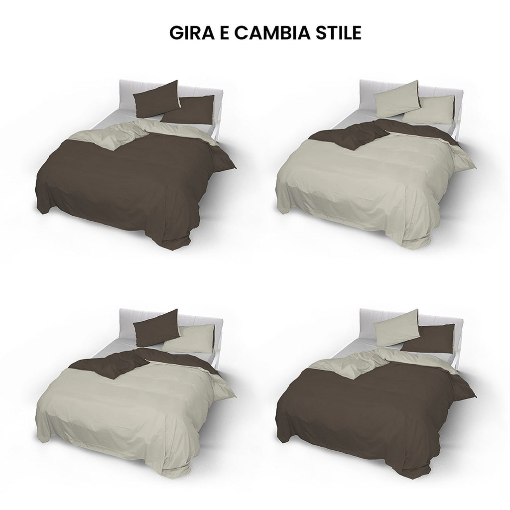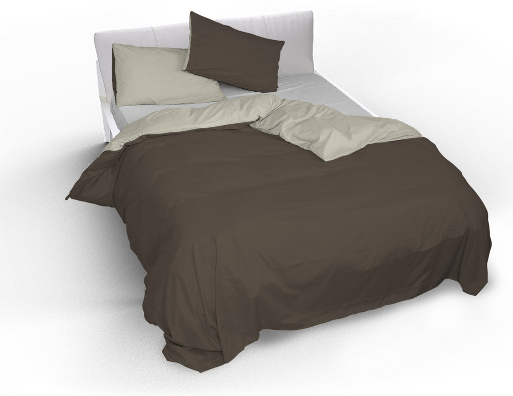 Housse de couette avec sac et taies d'oreiller double face marron/crème