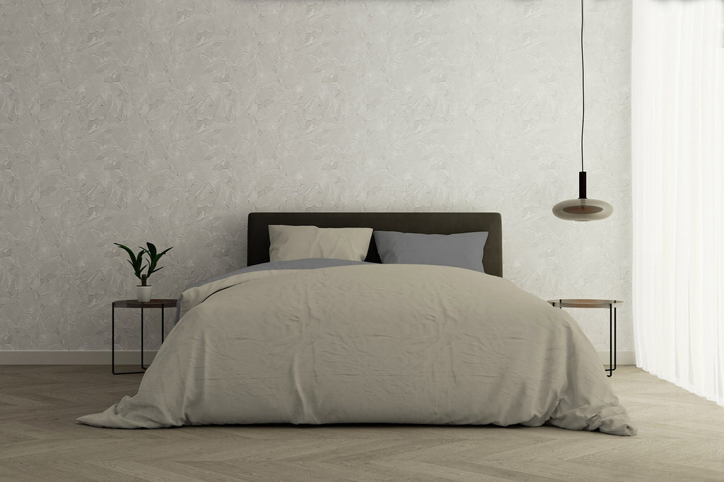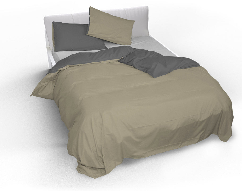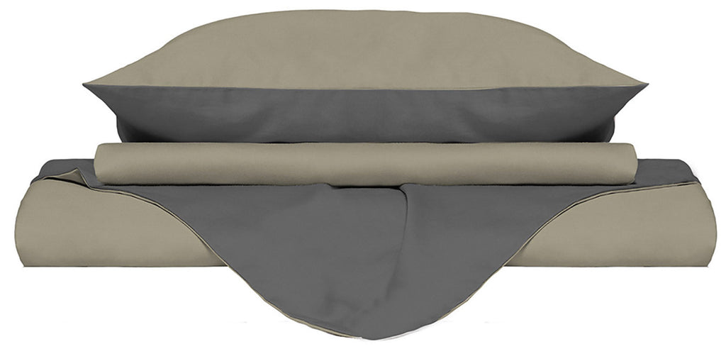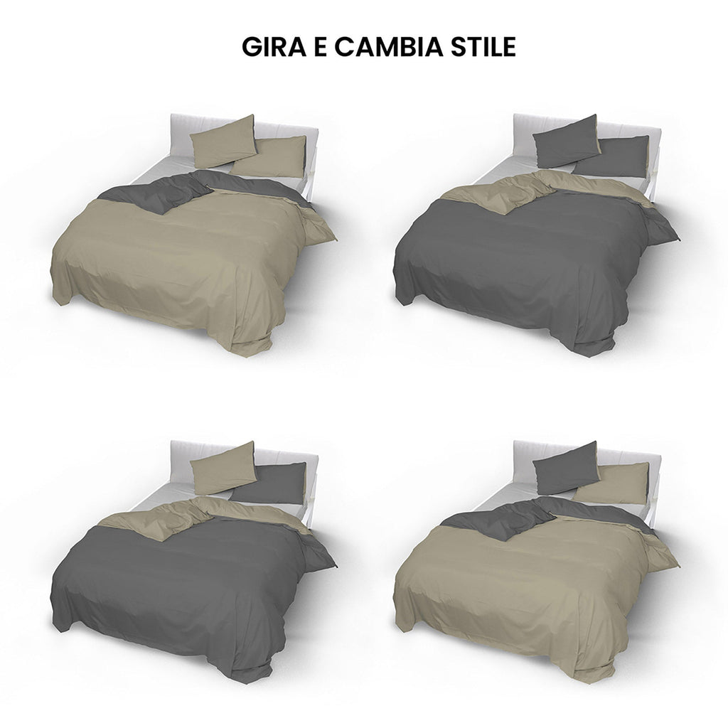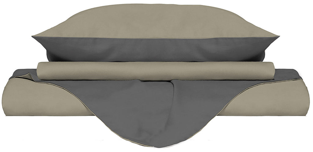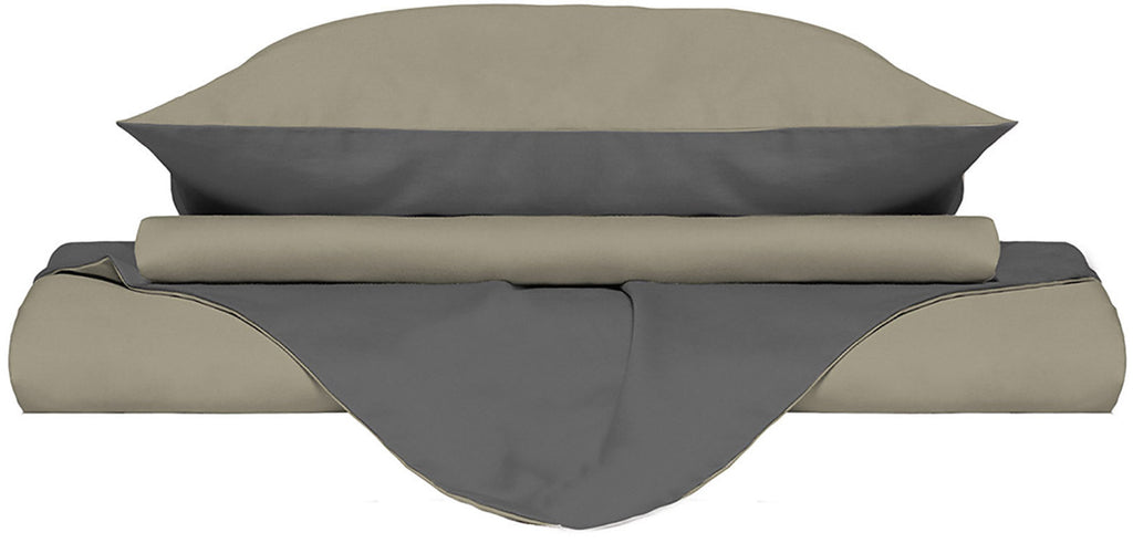 Housse de couette avec sac et taies d'oreiller double face gris tourterelle/fumée