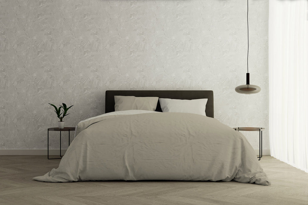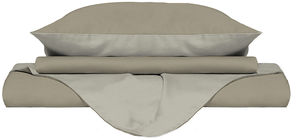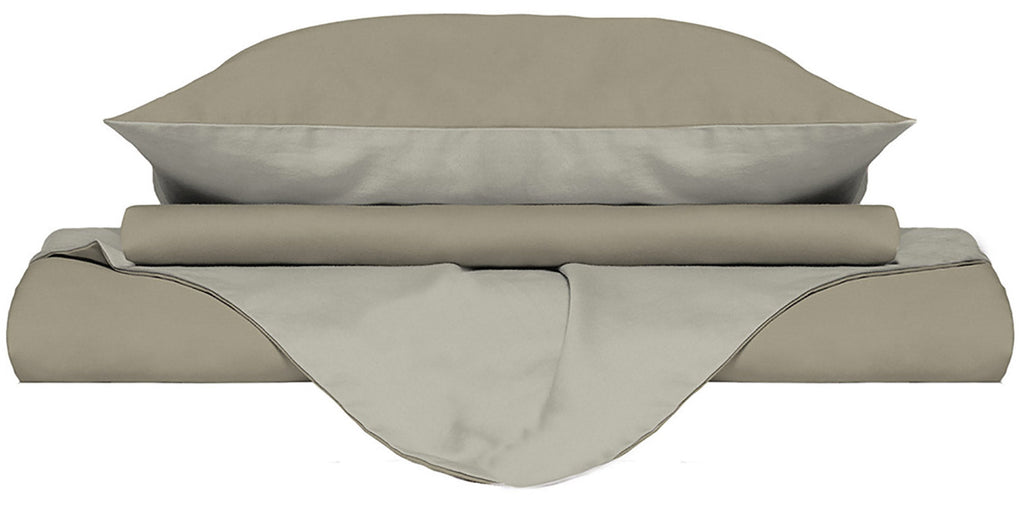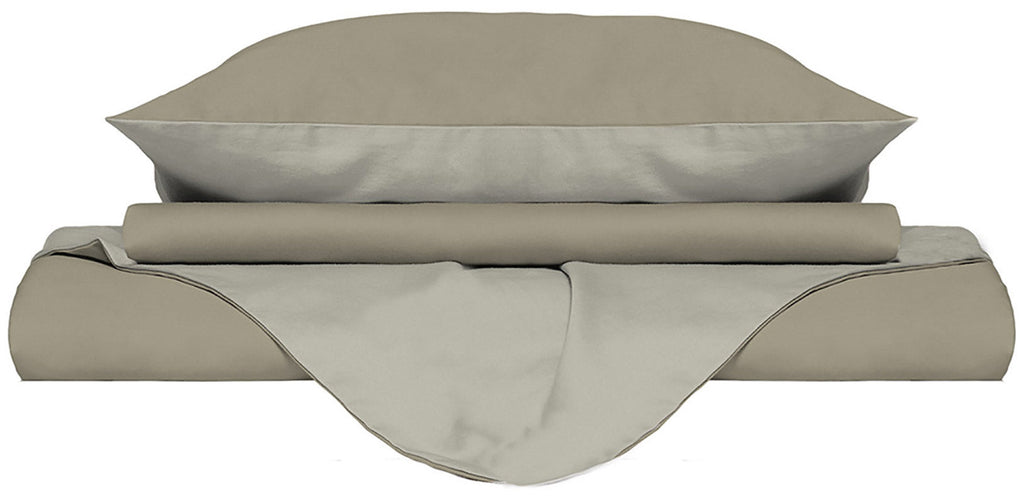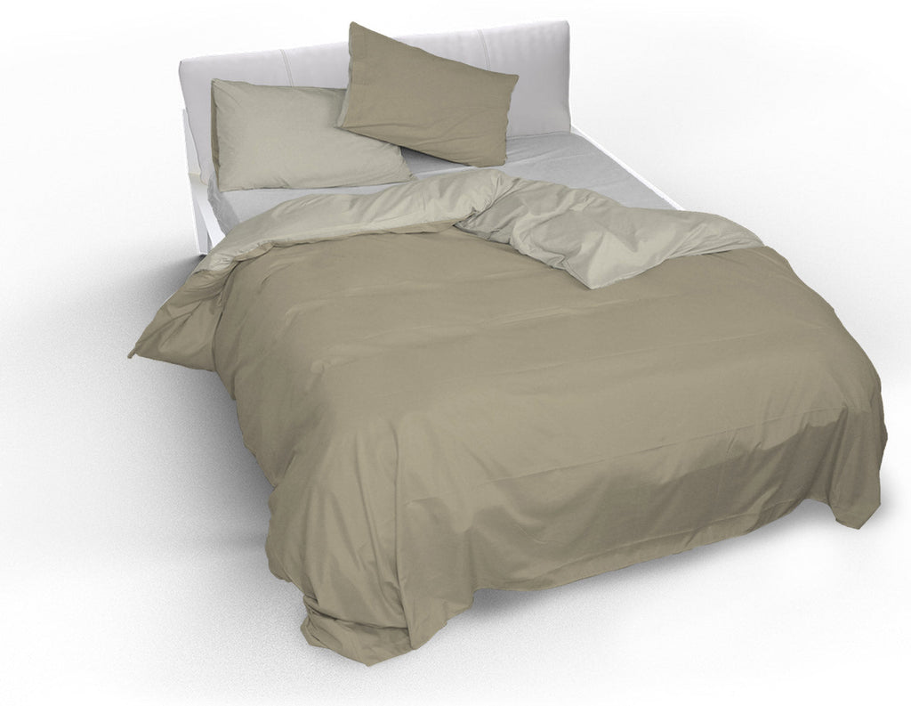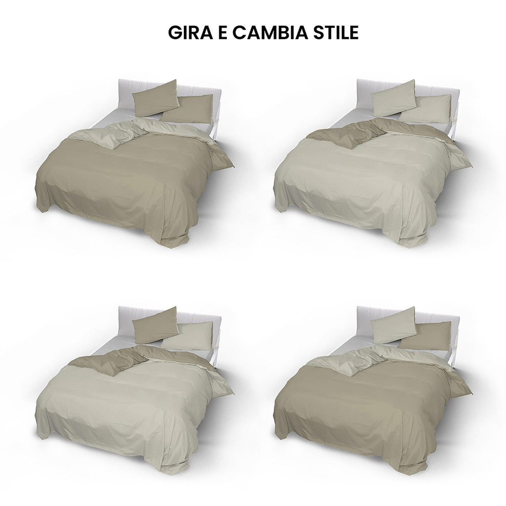 Housse de couette avec sac et taies d'oreiller double face gris tourterelle / crème