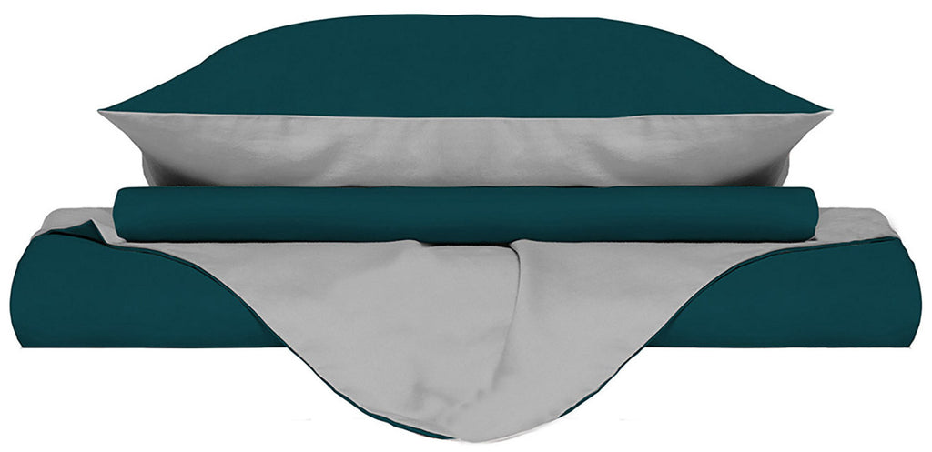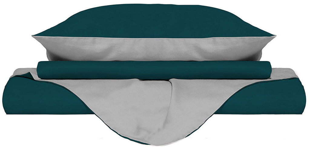 Housse de couette avec sac et taies réversibles Vert pétrole / Gris clair