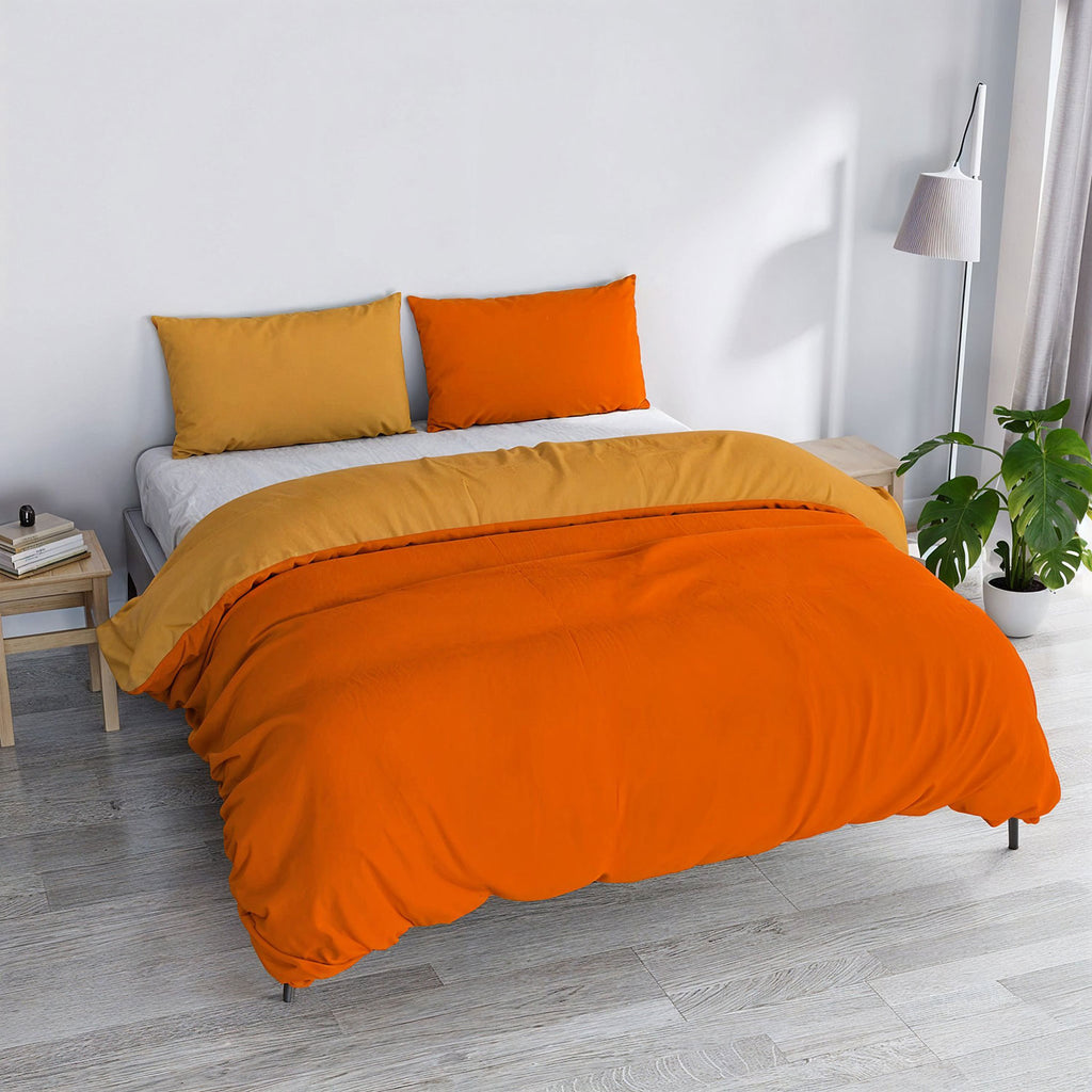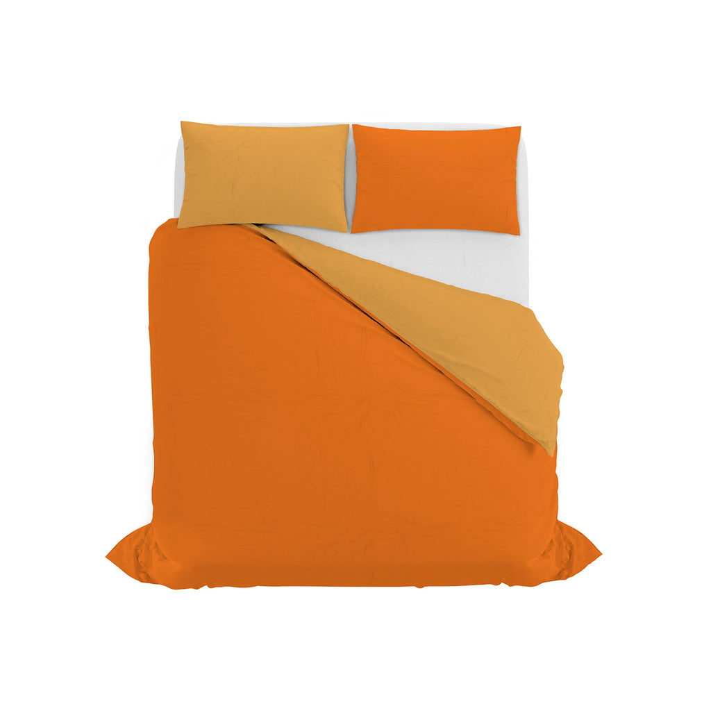 Lavaggio in lavatrice a 60 gradi, non candeggiare, non è necessario stirare l’articolo, possibilità di asciugatura a tamburo, possibilità di effettuare trattamento di manutenzione professionale.Copripiumino con Sacco e Federe in Tinta Unita Double Face Linea Vera Arancio e Giallo