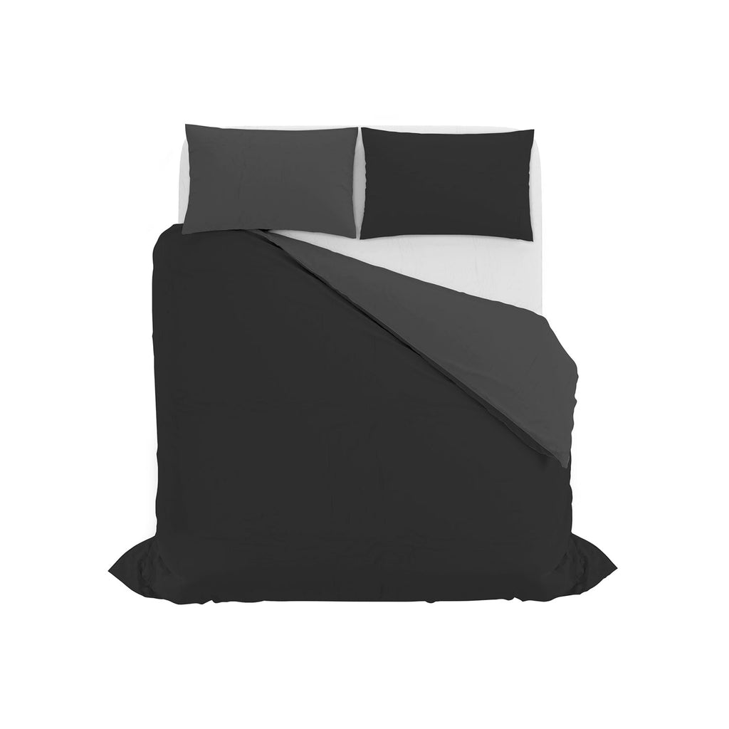 Copripiumino con Sacco e Federe in Tinta Unita Double Face Linea Vera Nero e Fumo