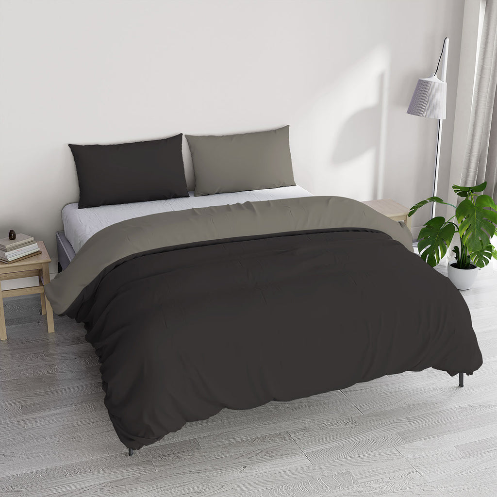 Copripiumino con Sacco e Federe in Tinta Unita Double Face Linea Zoe Cioccolato e Sabbia