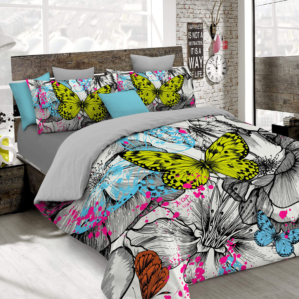 Parure de lit imprimée numériquement composée d' une housse de couette et de taies d'oreiller . Idéal pour ceux qui veulent habiller leur lit avec des images originales et uniques. Cette collection est représentée par des produits de haute qualité caractérisés par des impressions numériques sur des tissus 100% coton qui mettent en valeur chaque détail de l'image qui est lumineuse, définie et surtout solide au lavage. Étudié, assemblé et cousu entièrement en Italie , l'imprimé est positionné au centre du sac et des taies d'oreiller.