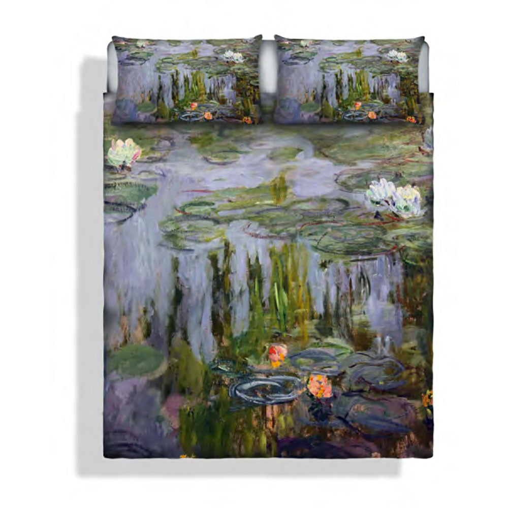 Parure de lit imprimée numériquement composée d' une housse de couette et de taies d'oreiller . Idéal pour ceux qui veulent habiller leur lit avec des images originales et uniques. Cette collection est représentée par des produits de haute qualité caractérisés par des impressions numériques sur des tissus 100% coton qui mettent en valeur chaque détail de l'image qui est lumineuse, définie et surtout solide au lavage. Étudié, assemblé et cousu entièrement en Italie , l'imprimé est positionné au centre du sac et des taies d'oreiller.