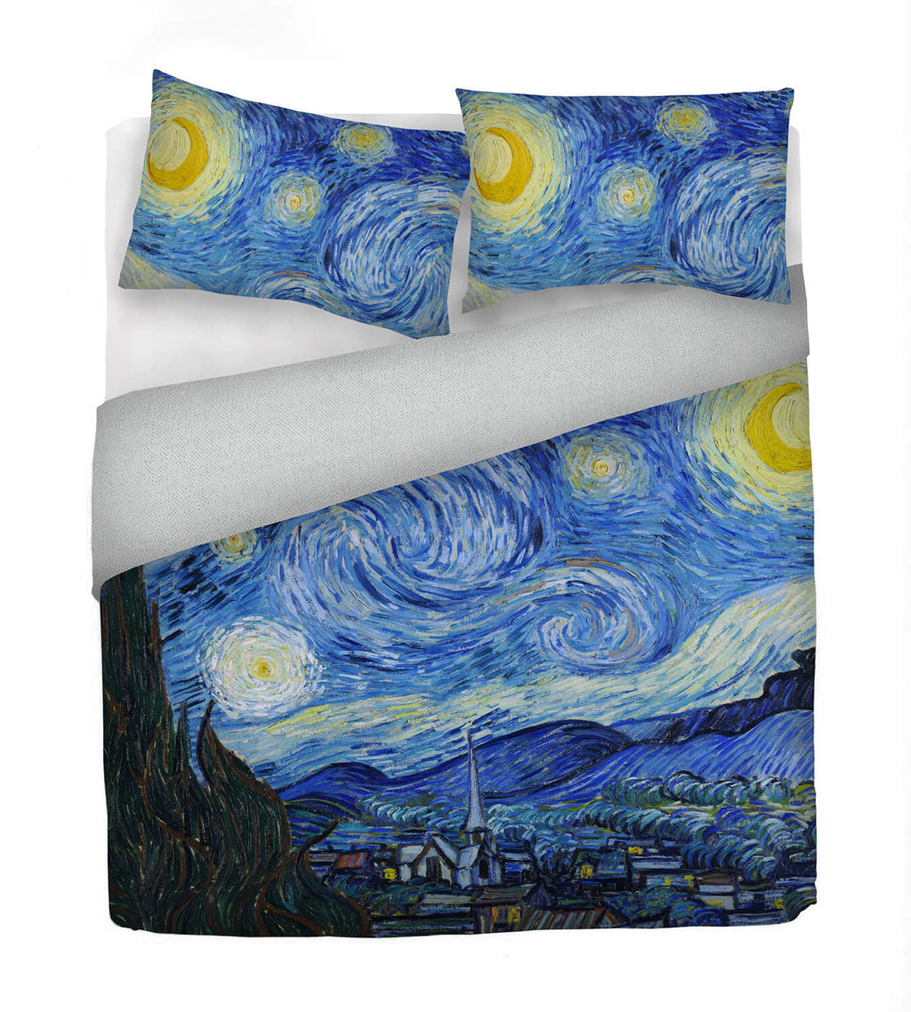 Parure de lit imprimée numériquement composée d' une housse de couette et de taies d'oreiller . Idéal pour ceux qui veulent habiller leur lit avec des images originales et uniques. Cette collection est représentée par des produits de haute qualité caractérisés par des impressions numériques sur des tissus 100% coton qui mettent en valeur chaque détail de l'image qui est lumineuse, définie et surtout solide au lavage. Étudié, assemblé et cousu entièrement en Italie , l'imprimé est positionné au centre du sac et des taies d'oreiller.