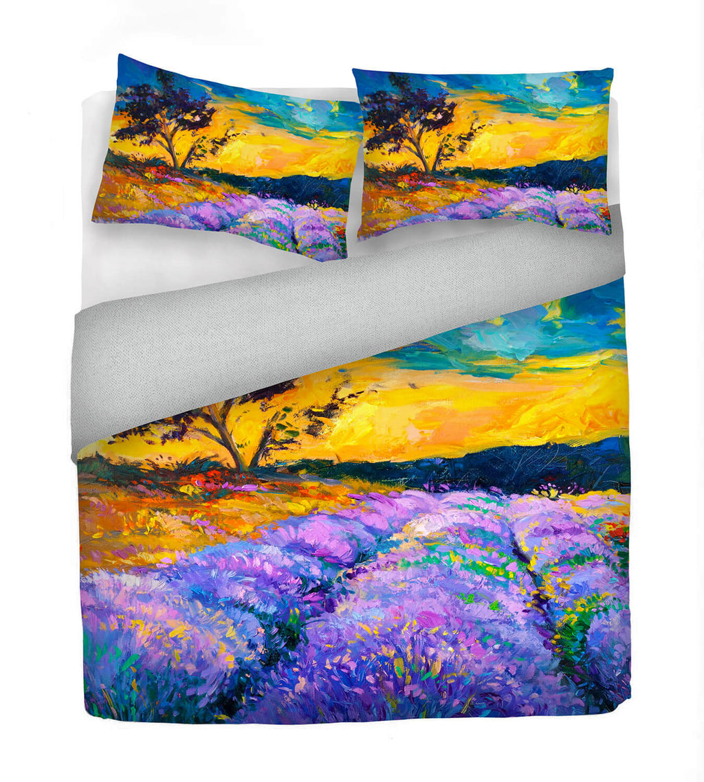 Parure de lit imprimée numériquement composée d' une housse de couette et de taies d'oreiller . Idéal pour ceux qui veulent habiller leur lit avec des images originales et uniques. Cette collection est représentée par des produits de haute qualité caractérisés par des impressions numériques sur des tissus 100% coton qui mettent en valeur chaque détail de l'image qui est lumineuse, définie et surtout solide au lavage. Étudié, assemblé et cousu entièrement en Italie , l'imprimé est positionné au centre du sac et des taies d'oreiller.