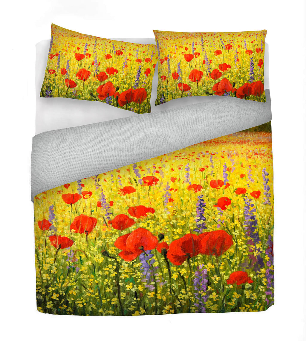 Parure de lit imprimée numériquement composée d' une housse de couette et de taies d'oreiller . Idéal pour ceux qui veulent habiller leur lit avec des images originales et uniques. Cette collection est représentée par des produits de haute qualité caractérisés par des impressions numériques sur des tissus 100% coton qui mettent en valeur chaque détail de l'image qui est lumineuse, définie et surtout solide au lavage. Étudié, assemblé et cousu entièrement en Italie , l'imprimé est positionné au centre du sac et des taies d'oreiller.